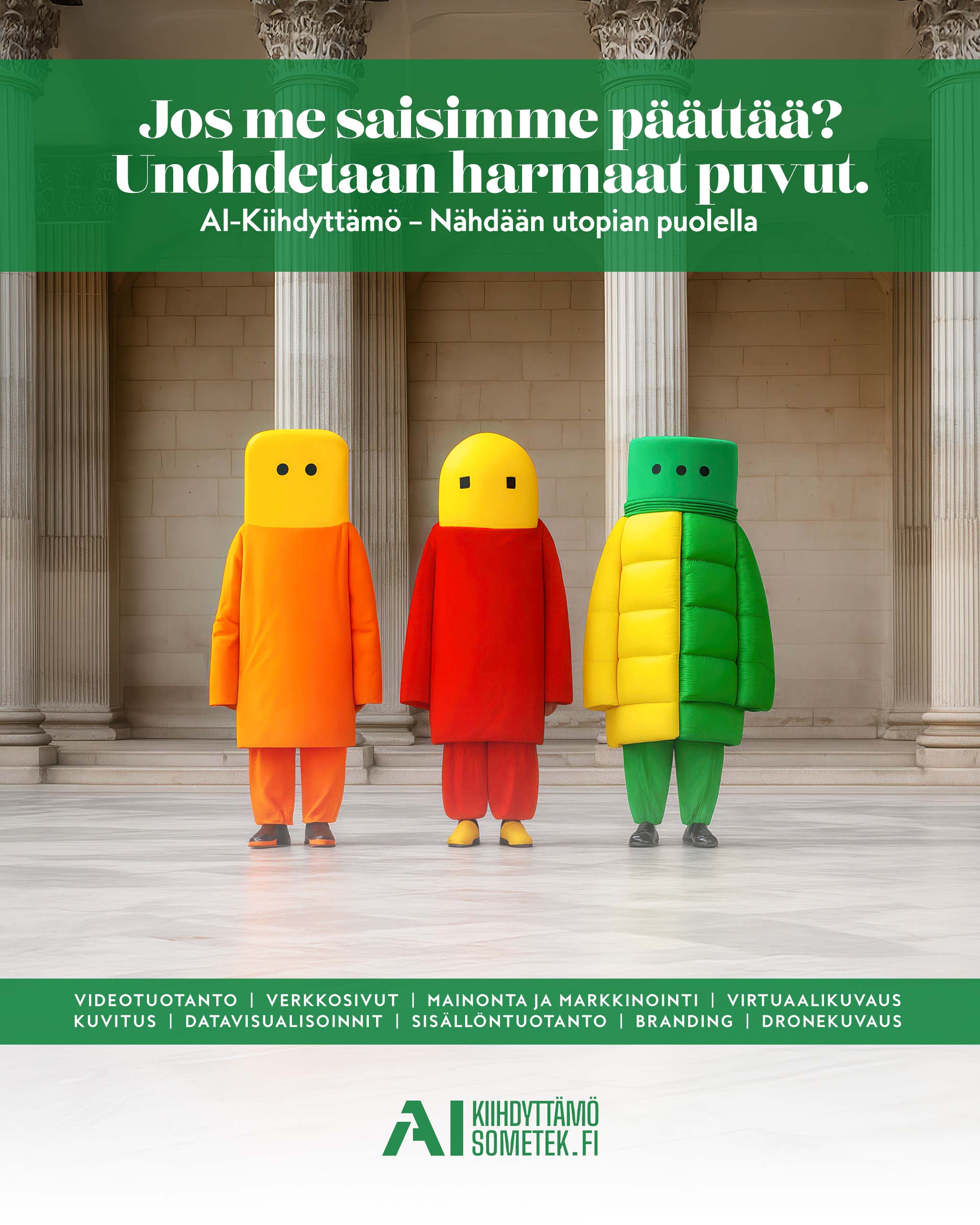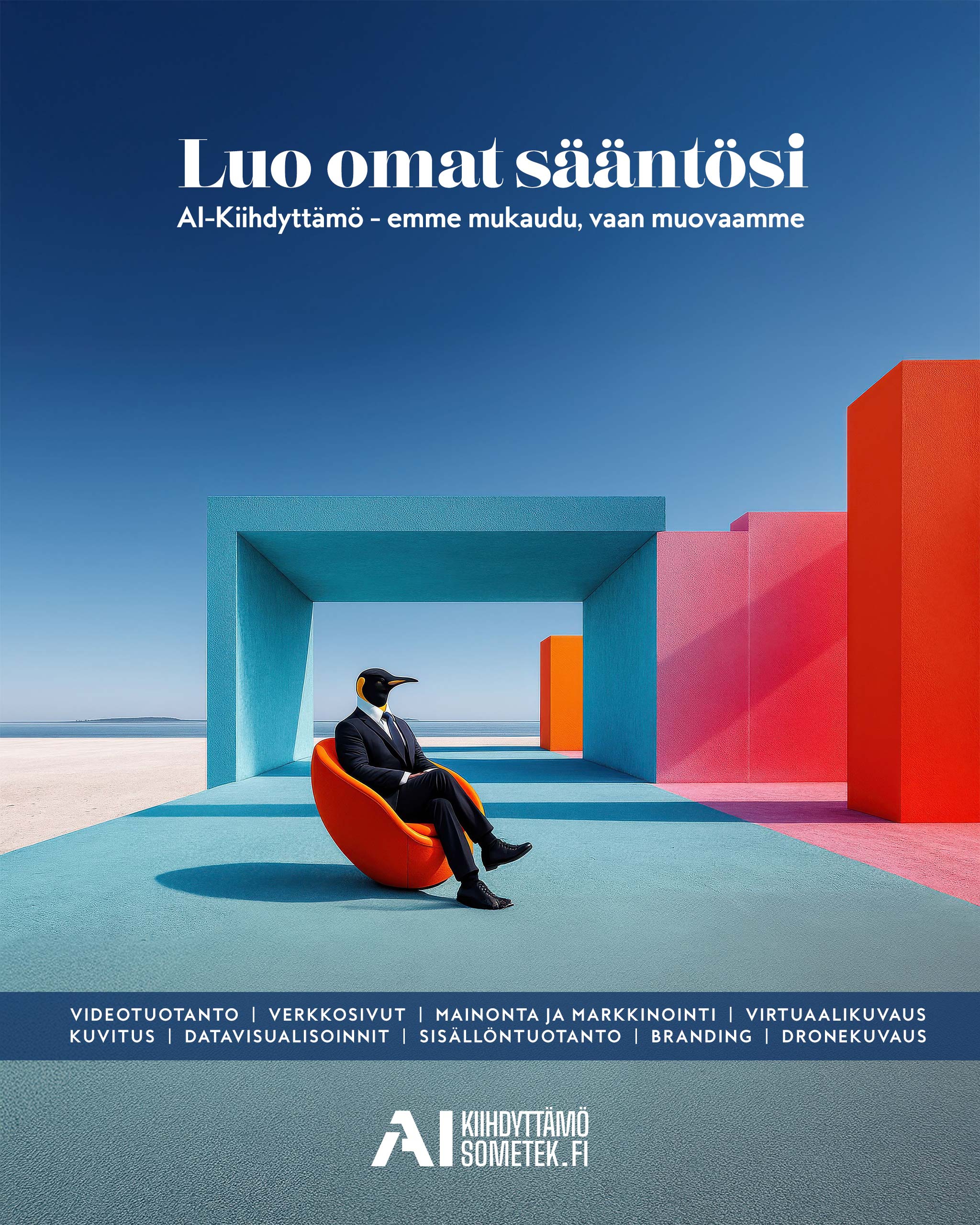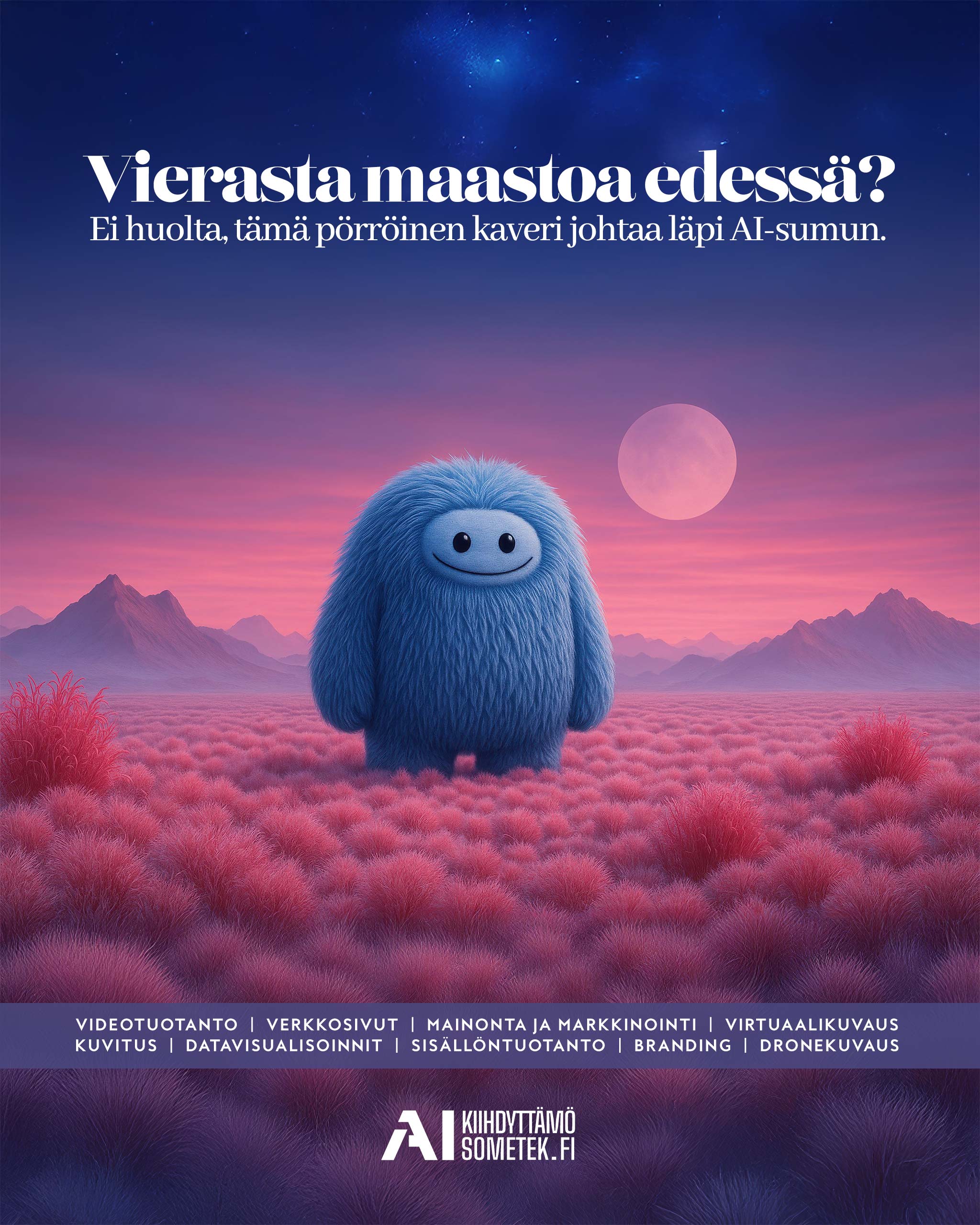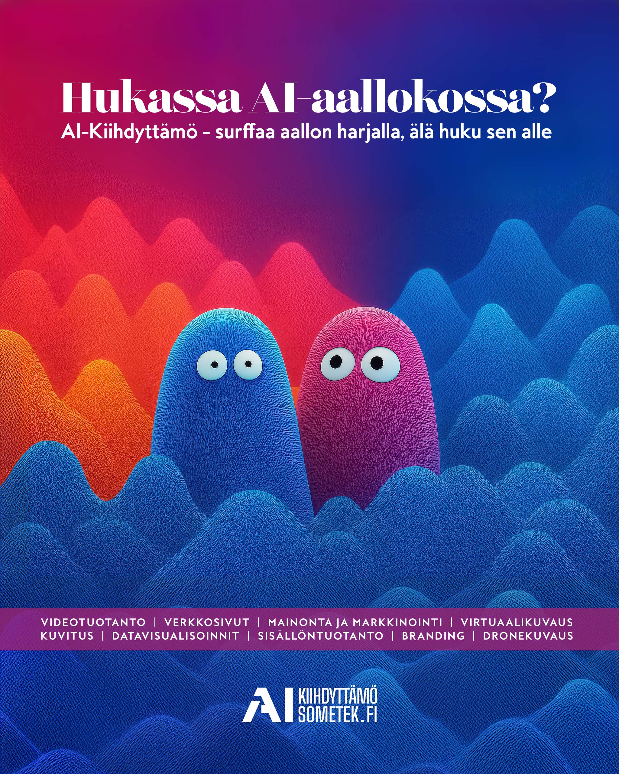 ”AI-Kiihdyttämö 52: Enemmän on enemmän” näyttää, miten mainoskonsepteja voidaan skaalata nollasta sataan tekoälyn avulla. Idea oli nopealla aikataululla luoda mainossarja, jossa on tuore mutta tunnistettava mainos vuoden jokaisen viikolle. Haaste auttoi hiomaan luovan prosessin ja työnkulut tehokkaiksi – raakaideoiden tuottamisesta mainosten visualisointiin, jalostamiseen ja konseptien skaalaamiseen.