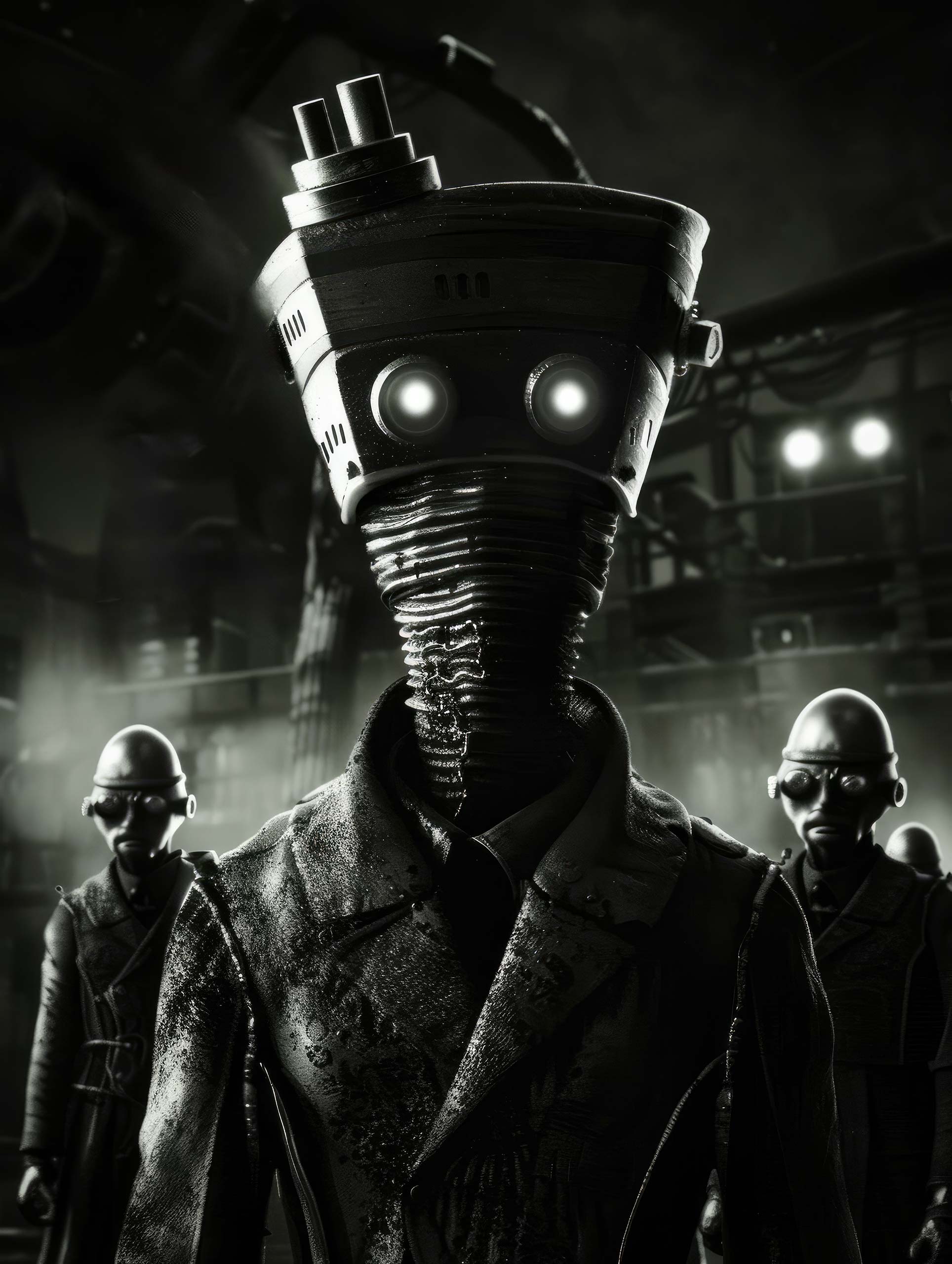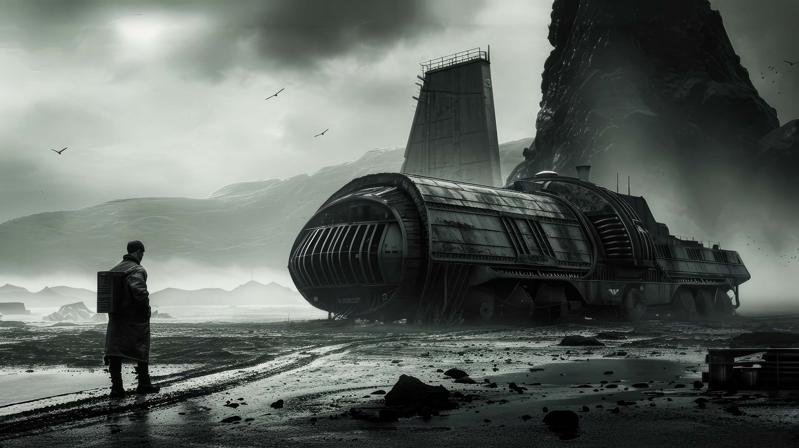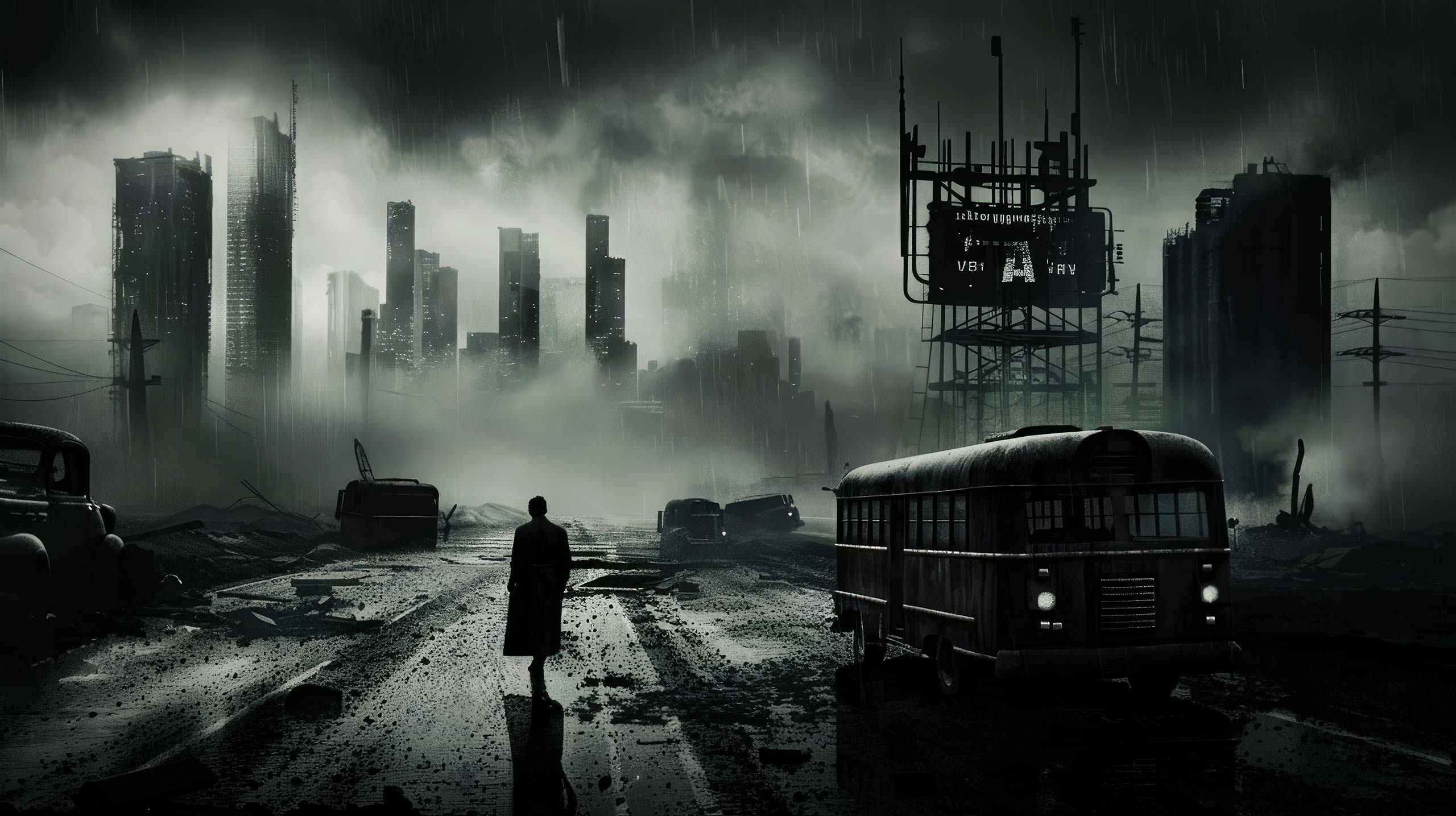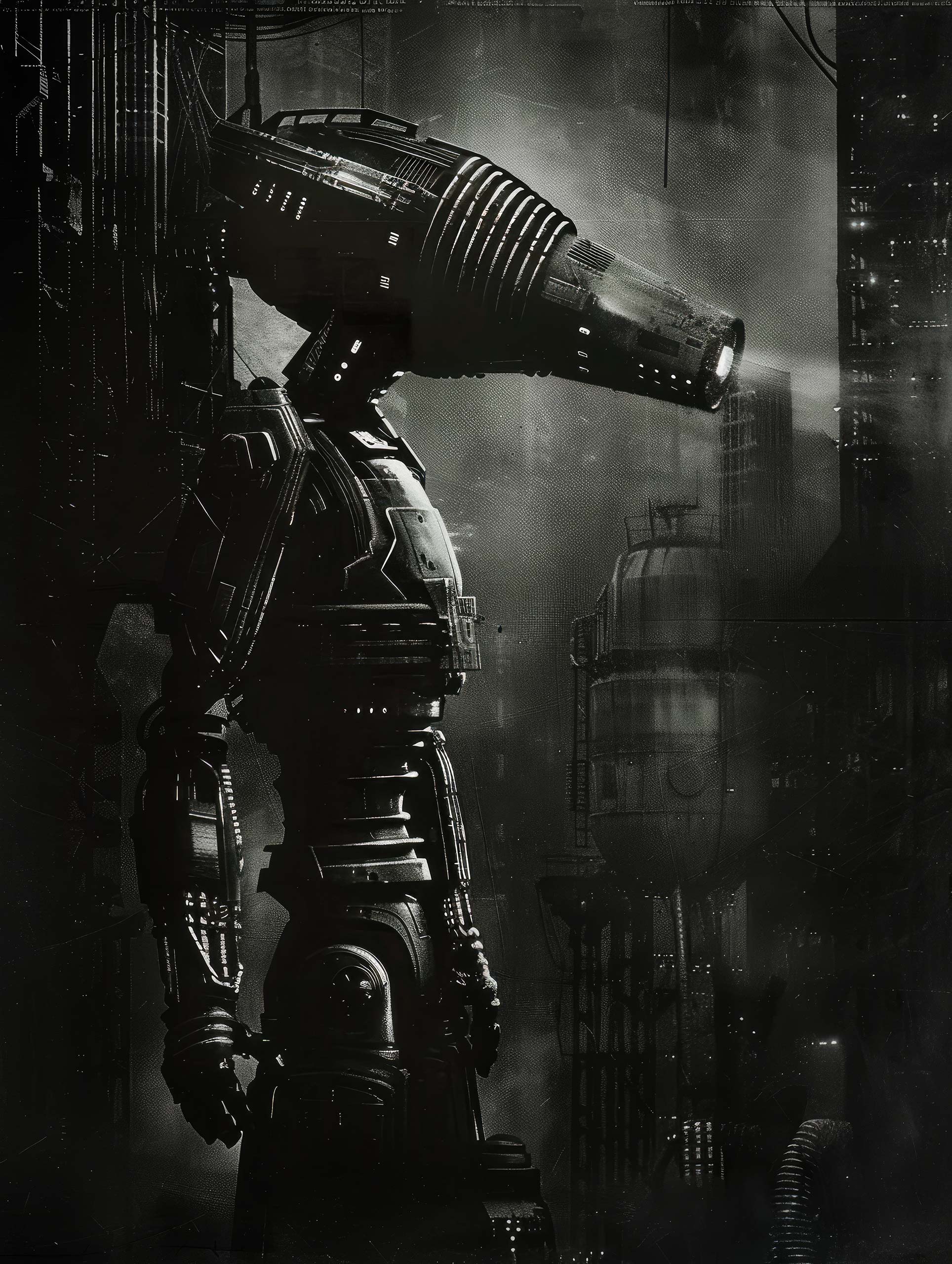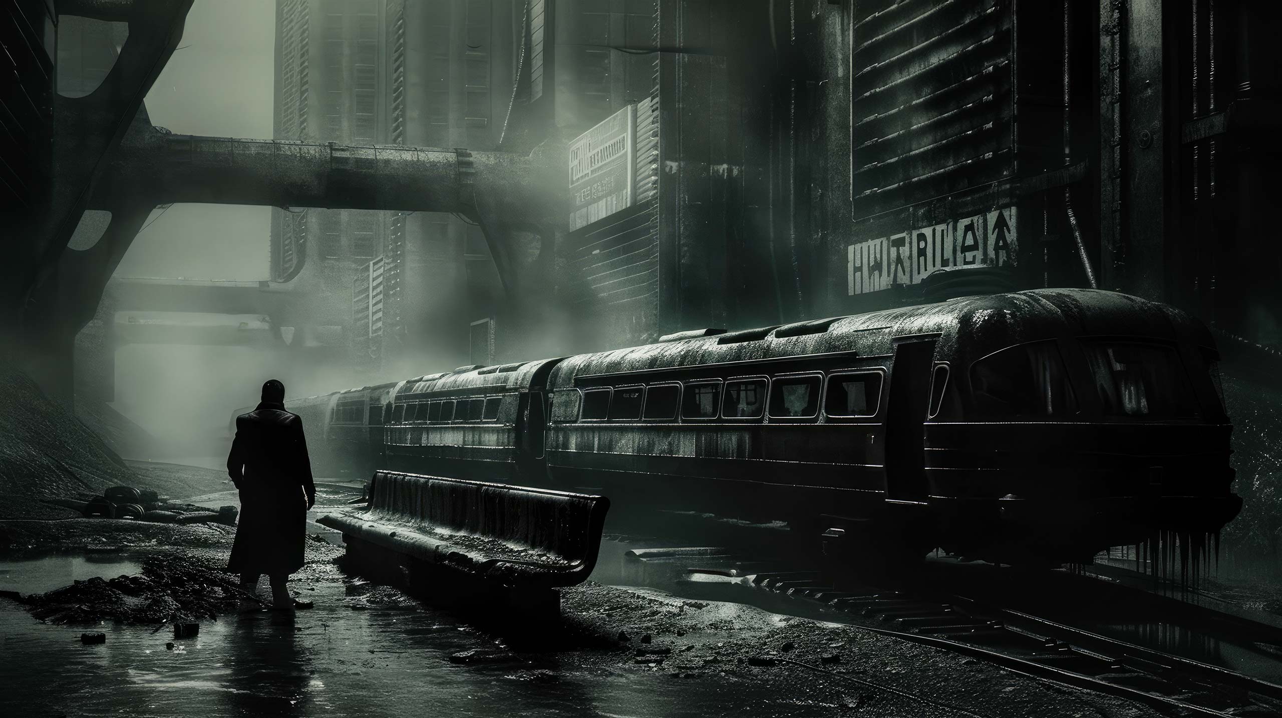 Futuro Noir embraces the dramatic black-and-white aesthetic of film noir and takes it to a sci-fi setting. The artwork consists of over 50 cinematic scenes and a film trailer, that evolves into parody, highlighting the limitations of AI-generated videos. The collection of 50+ images creates a moody and bleak retro-futuristic world, serving as a moodboard for a film that never was.