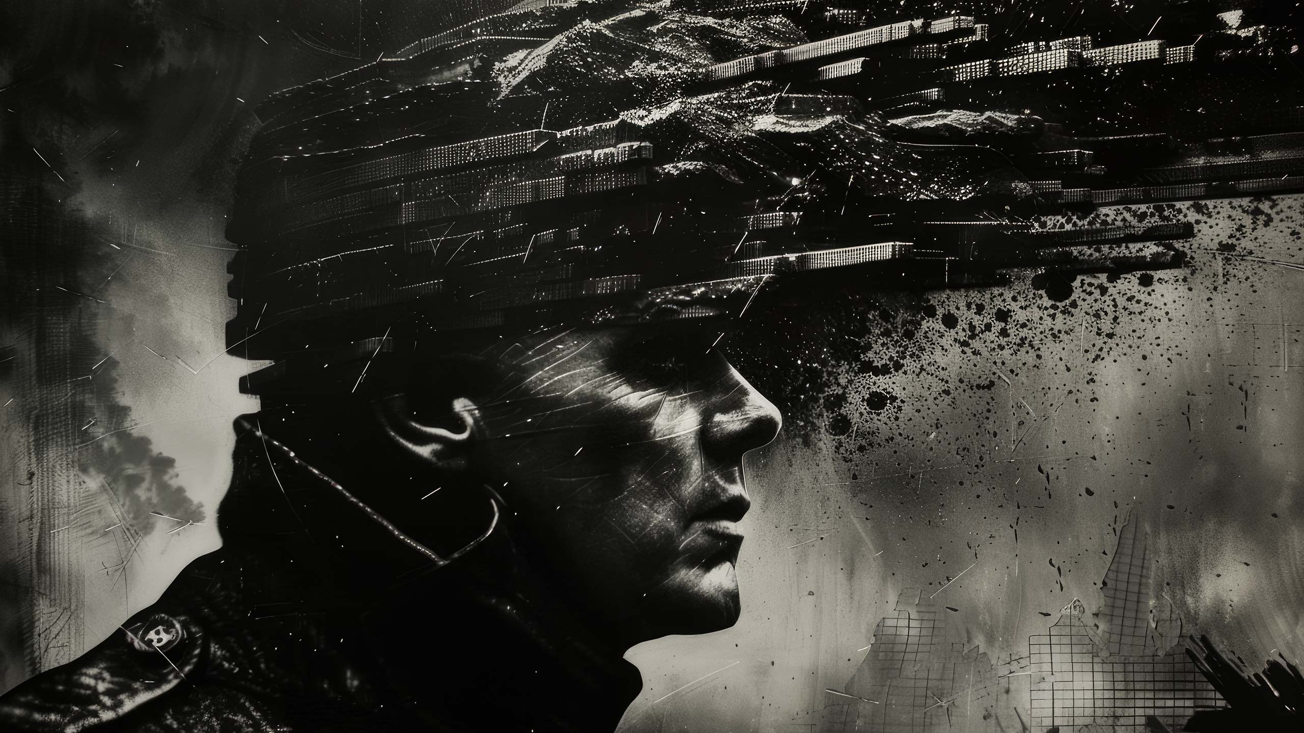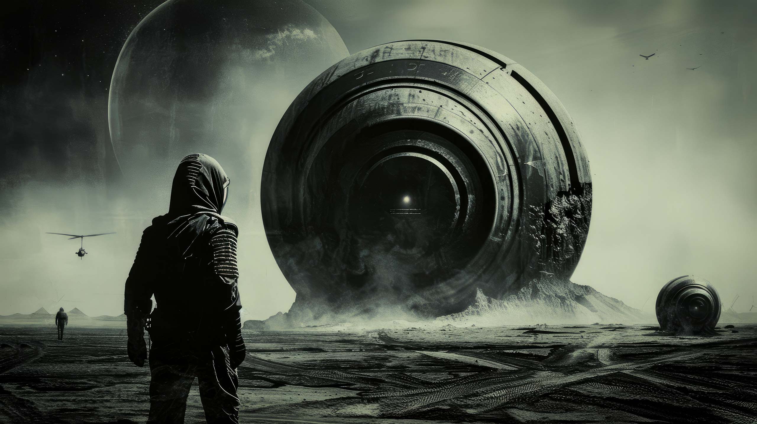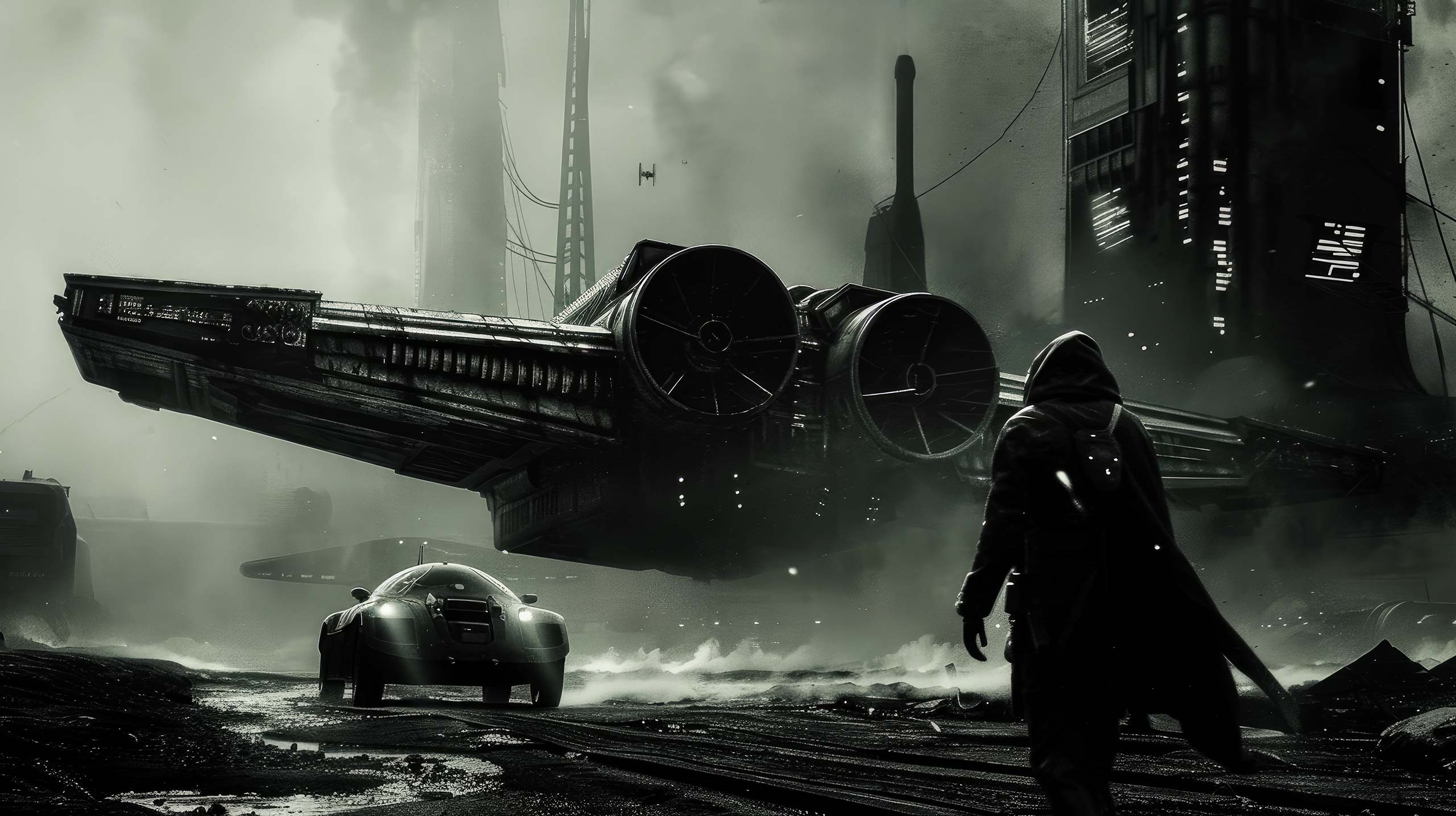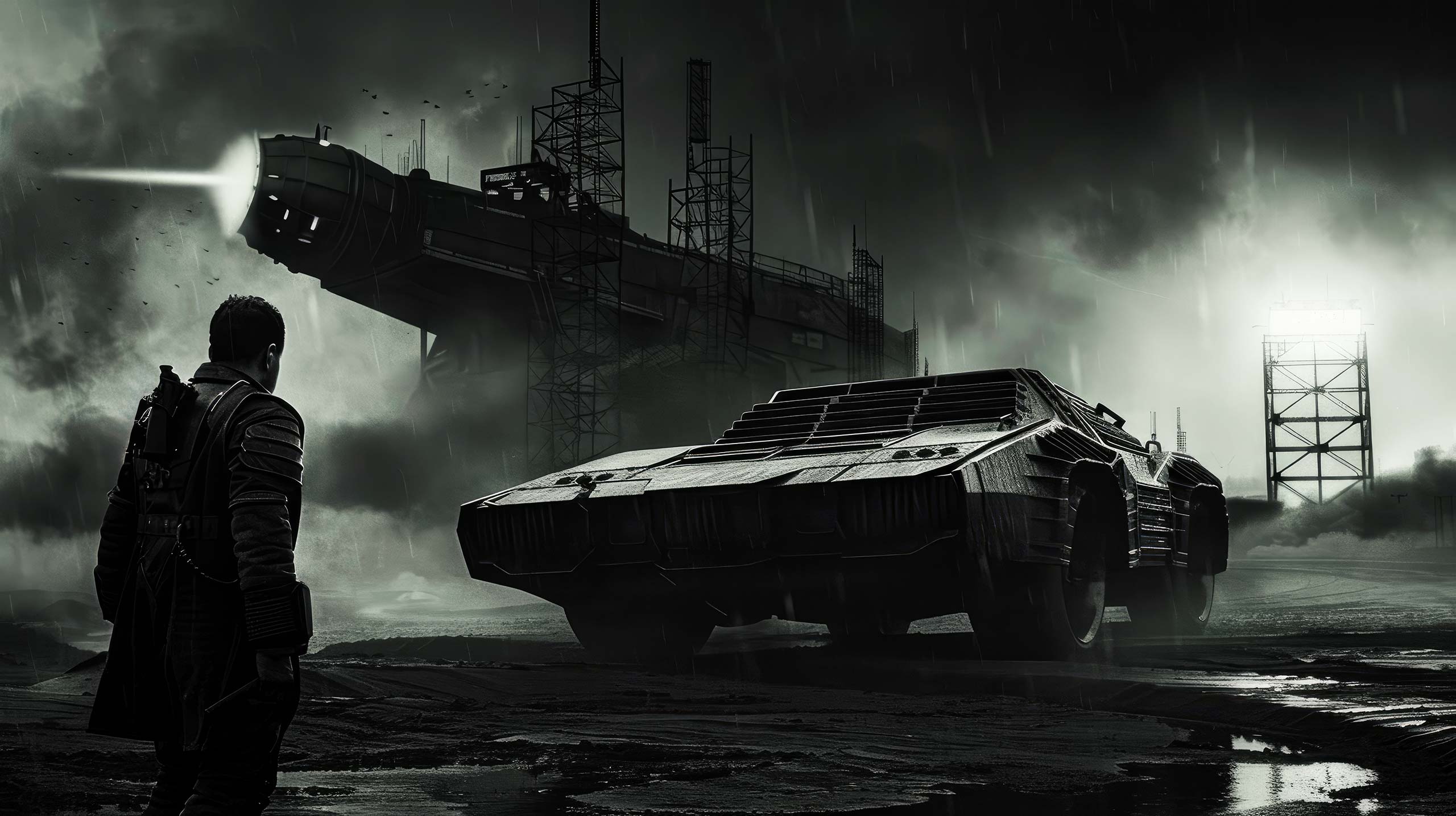 Futuro Noir embraces the dramatic black-and-white aesthetic of film noir and takes it to a sci-fi setting. The artwork consists of over 50 cinematic scenes and a film trailer, that evolves into parody, highlighting the limitations of AI-generated videos. The collection of 50+ images creates a moody and bleak retro-futuristic world, serving as a moodboard for a film that never was.