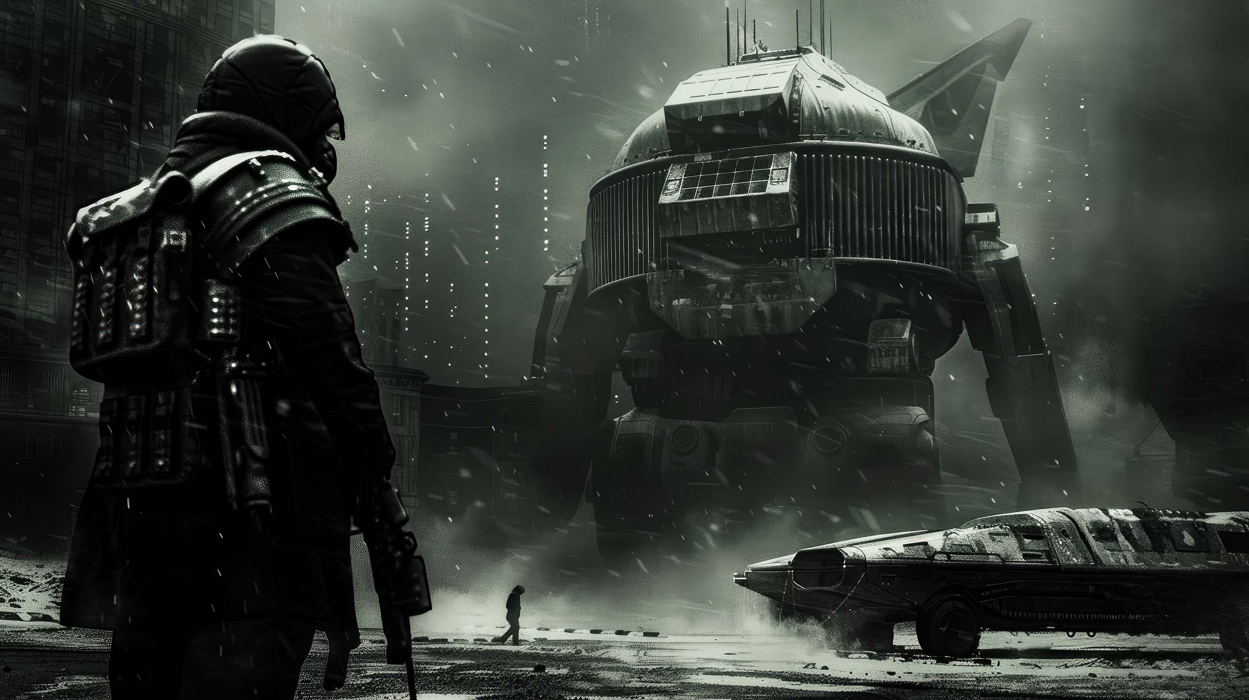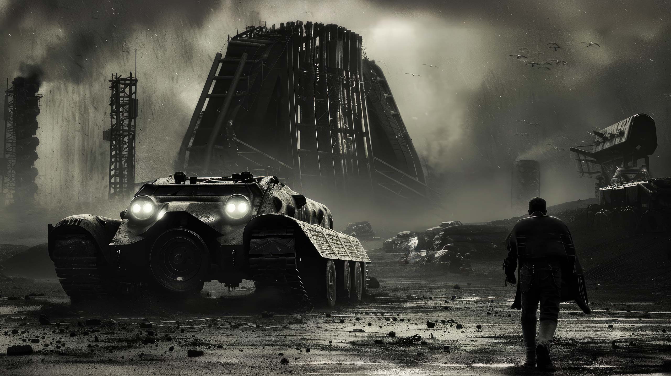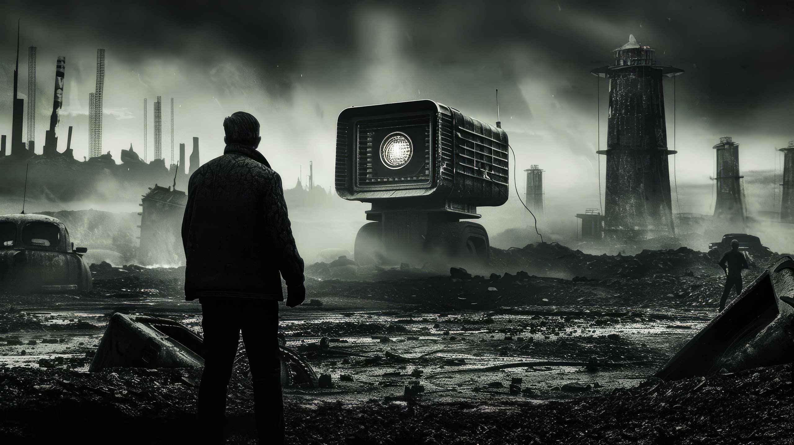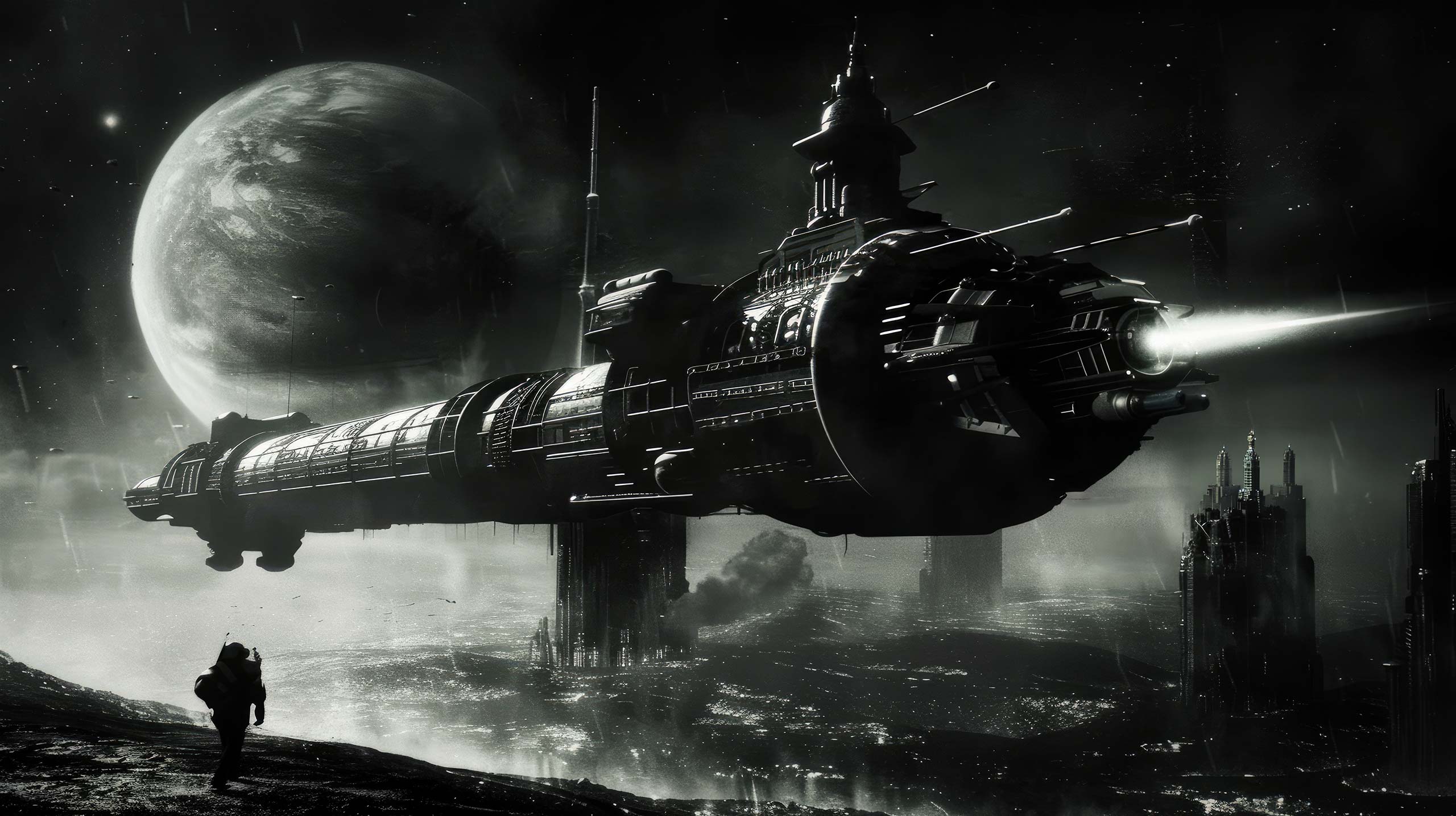 Futuro Noir embraces the dramatic black-and-white aesthetic of film noir and takes it to a sci-fi setting. The artwork consists of over 50 cinematic scenes and a film trailer, that evolves into parody, highlighting the limitations of AI-generated videos. The collection of 50+ images creates a moody and bleak retro-futuristic world, serving as a moodboard for a film that never was.