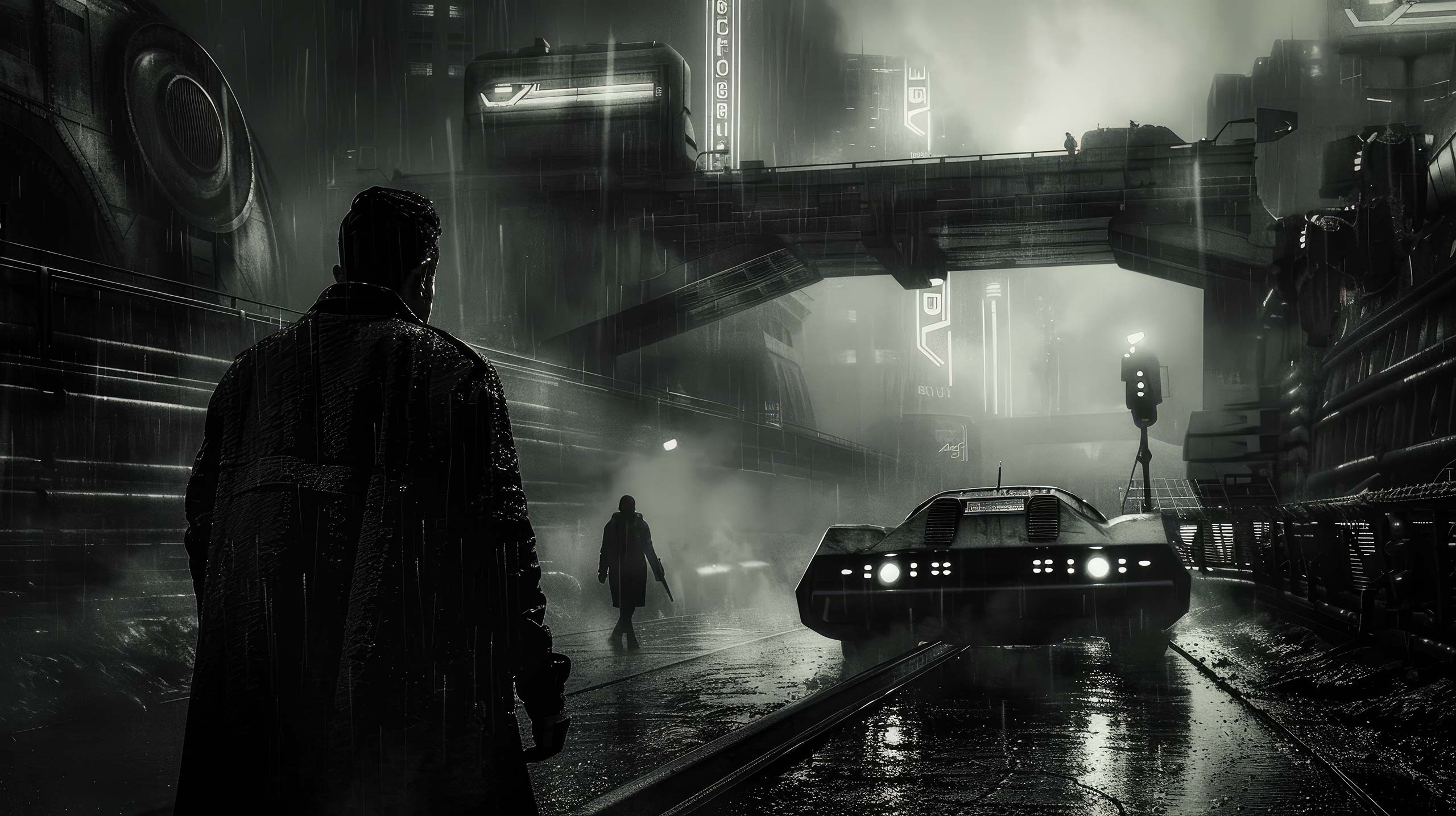Futuro Noir bypasses these pitfalls by taking an experimental approach, discarding characters, dialogue, and plot altogether. Instead, it focuses on absurd obsession for noir in futuristic settings and the sheer visual allure of black and white pixels. Through this approach, it encourages us to ponder the disconnect between the striking aesthetic appeal of AI-driven creations and their lack of narrative substance.