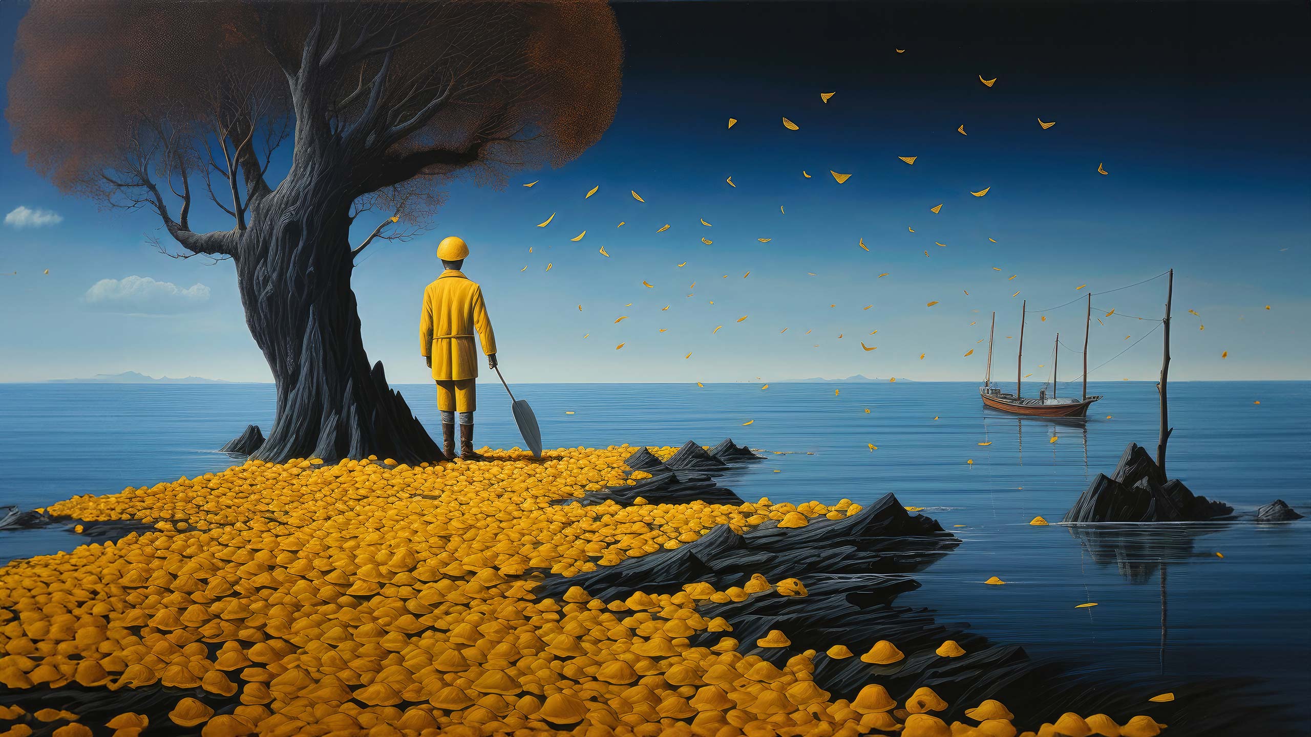“New Horizons” explores various horizons – dreams, hopes, fears, utopias, dystopias. As your gaze stretches to the distance, faint yet discernible, a myriad of surprises unfolds – mirages, peculiar creatures, exploration vessels, spiritual emblems, pathways, and portals… There is plenty of space for interpretation as horizon becomes a mirror that reflects the desires and aspirations of each beholder. “New Horizons” is an invitation to see beyond what your eyes perceive, to explore the uncharted territories of our own minds, to discover the worlds that lie within and beyond the ever-expanding horizon. What do you see in the horizon?