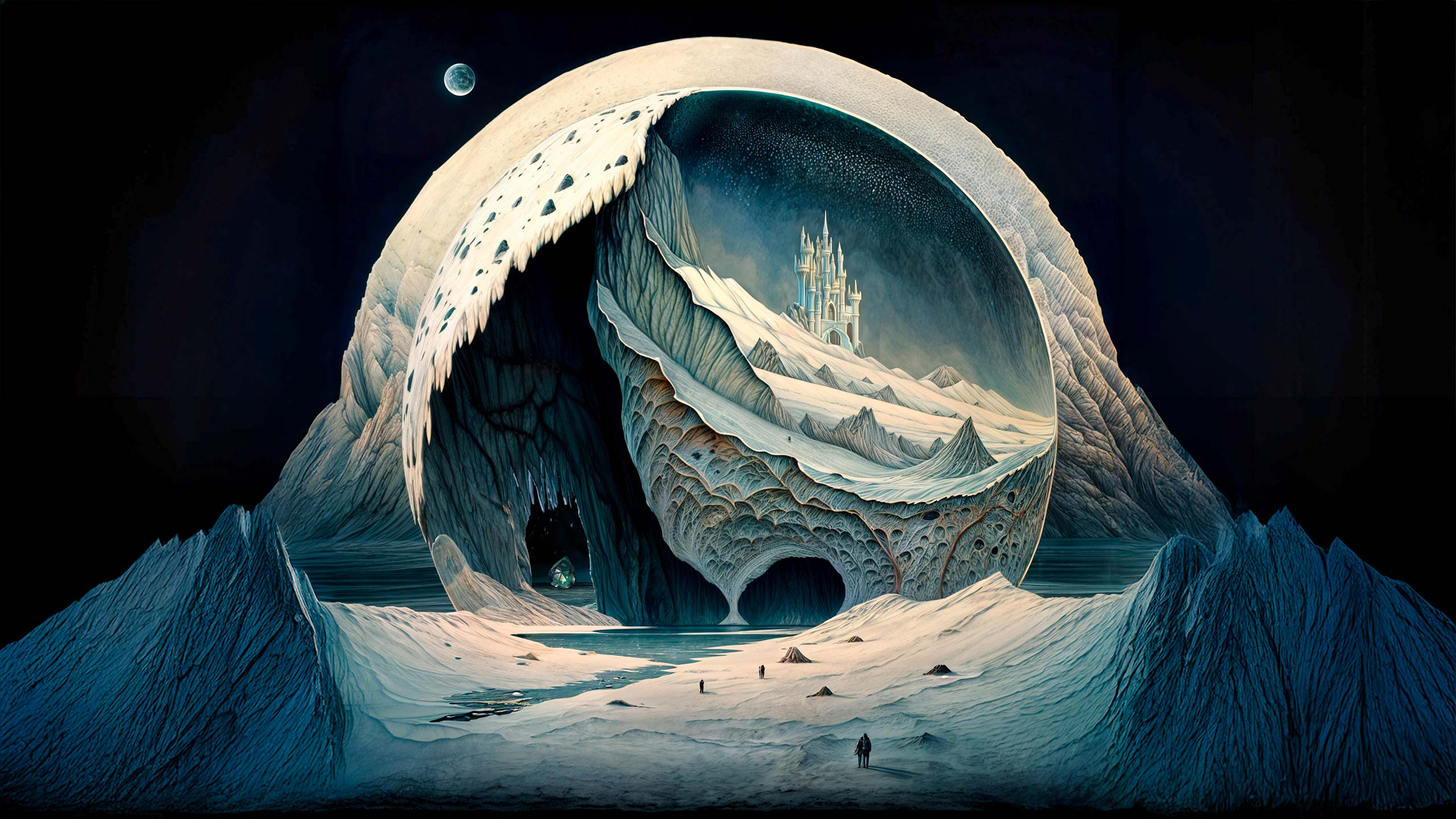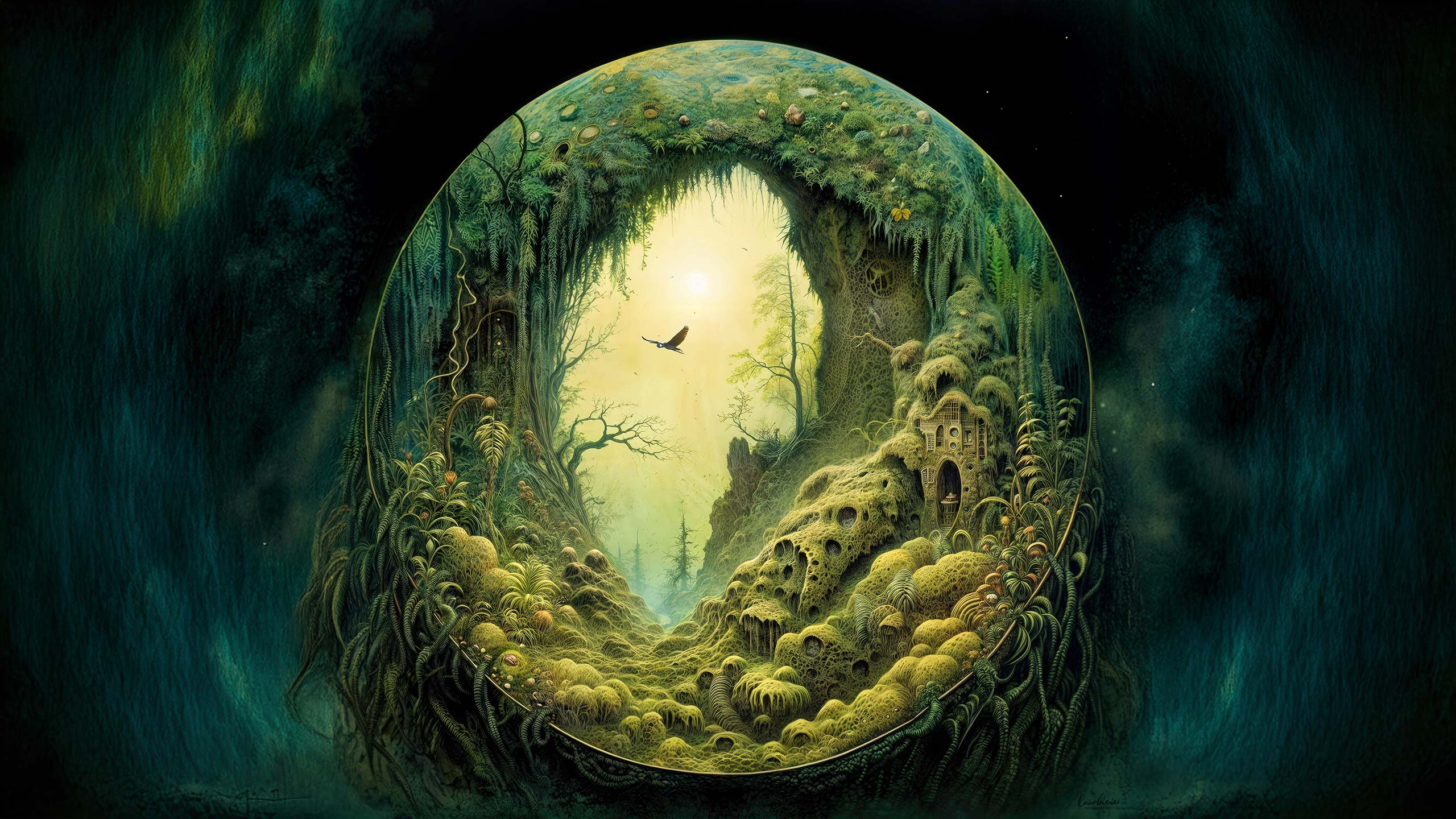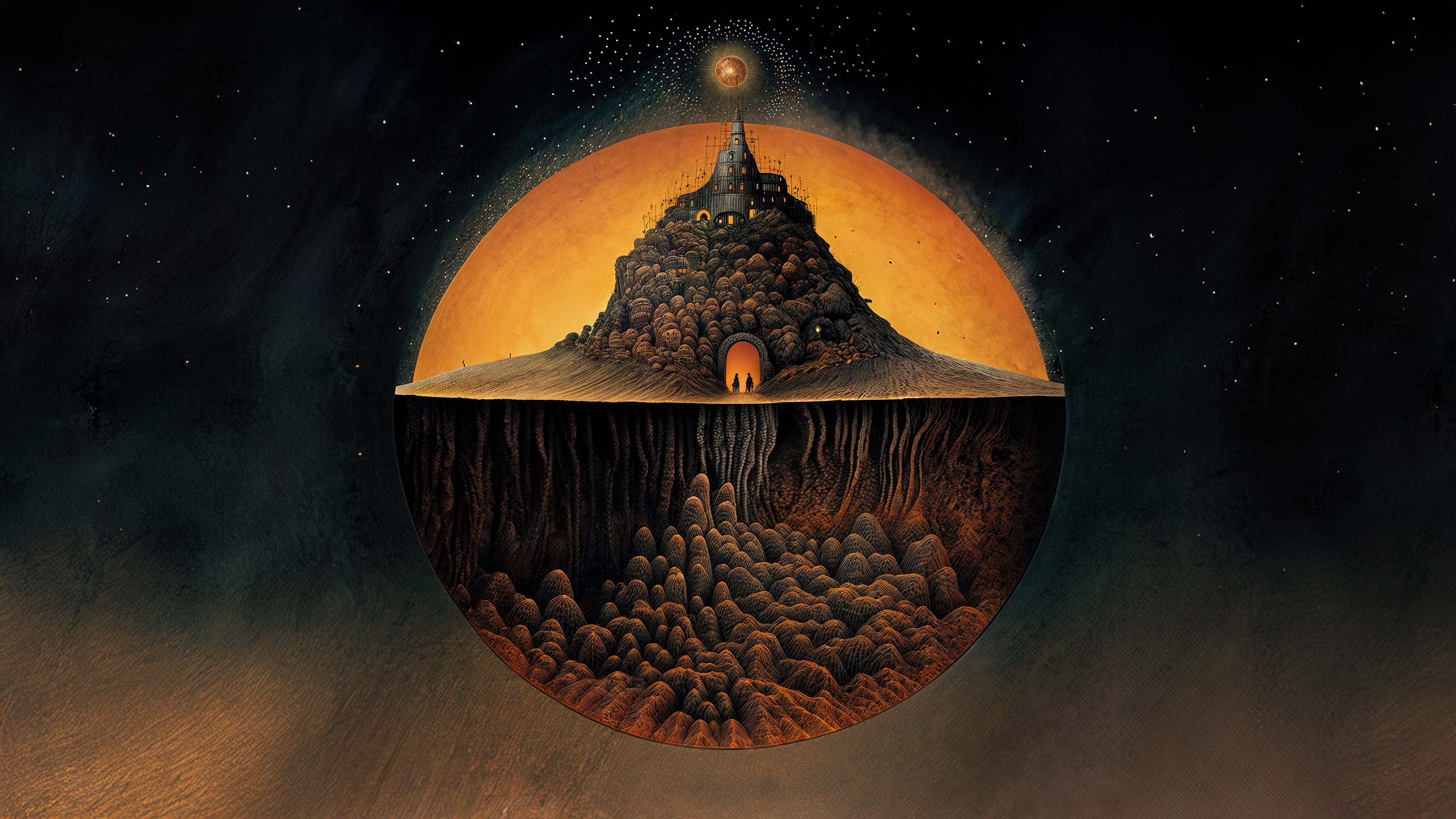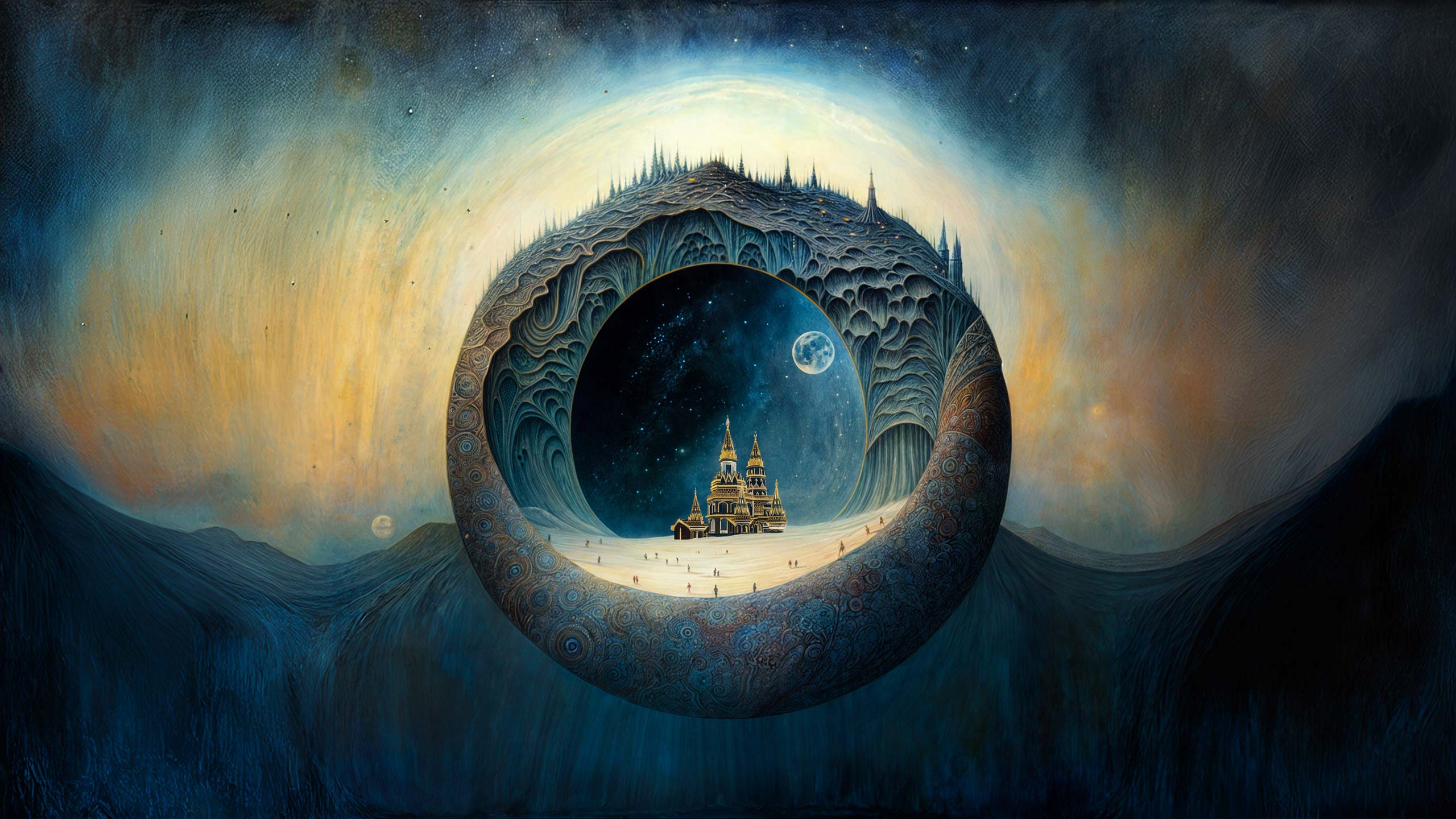 Welcome to “Petite Planets”, a collection of tiny universes encapsulated within orbs, presented in surreal, twisted cutaway views, meticulously sliced for your viewing pleasure. Immerse yourself in a spectrum of ecosystems and geographies, journeying through worlds sculpted by sand, forged in fire, frozen in ice, and flourishing with life. The artwork is part of Surreal 100 -series, celebrating 100 years of surrealism.