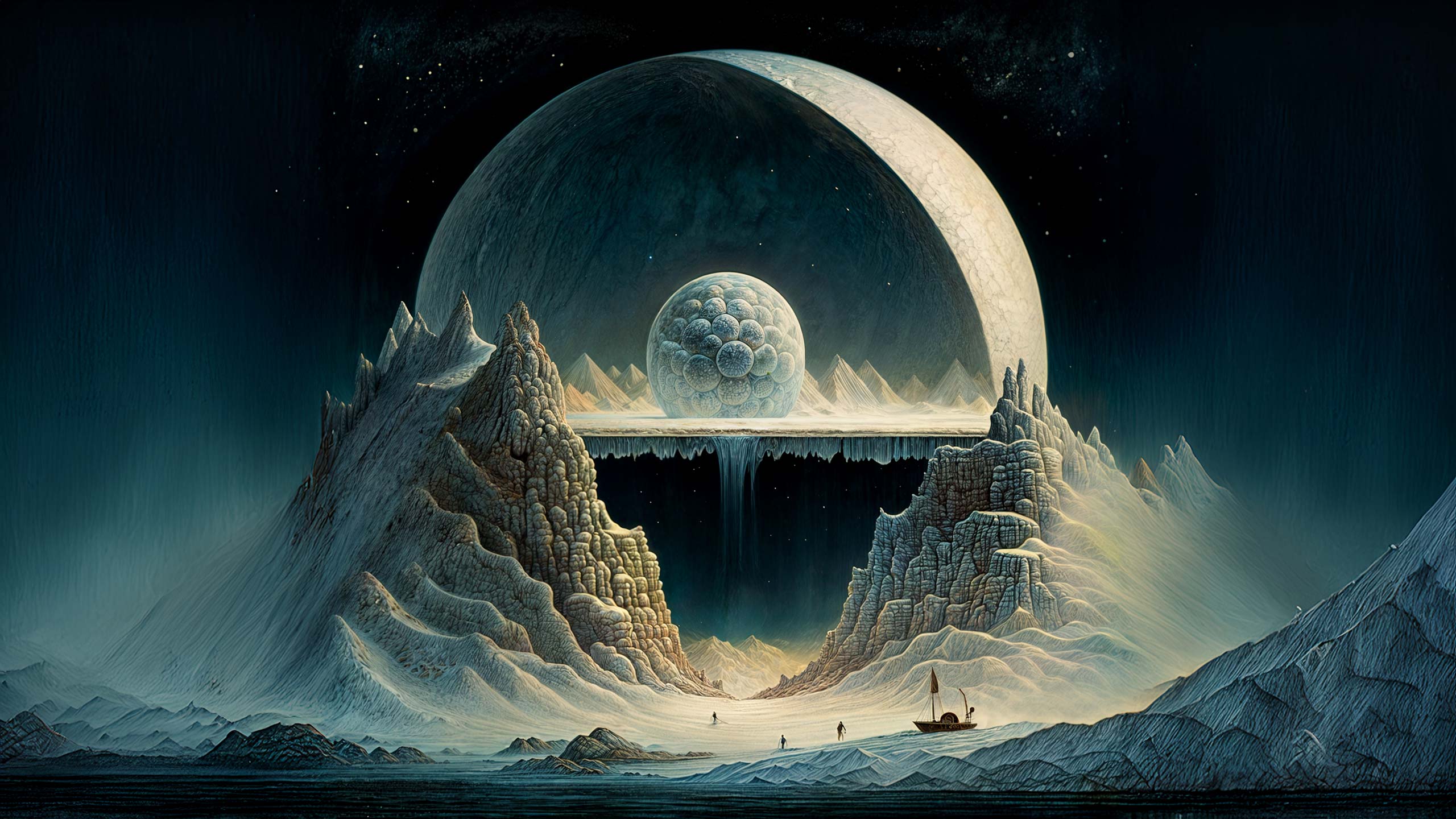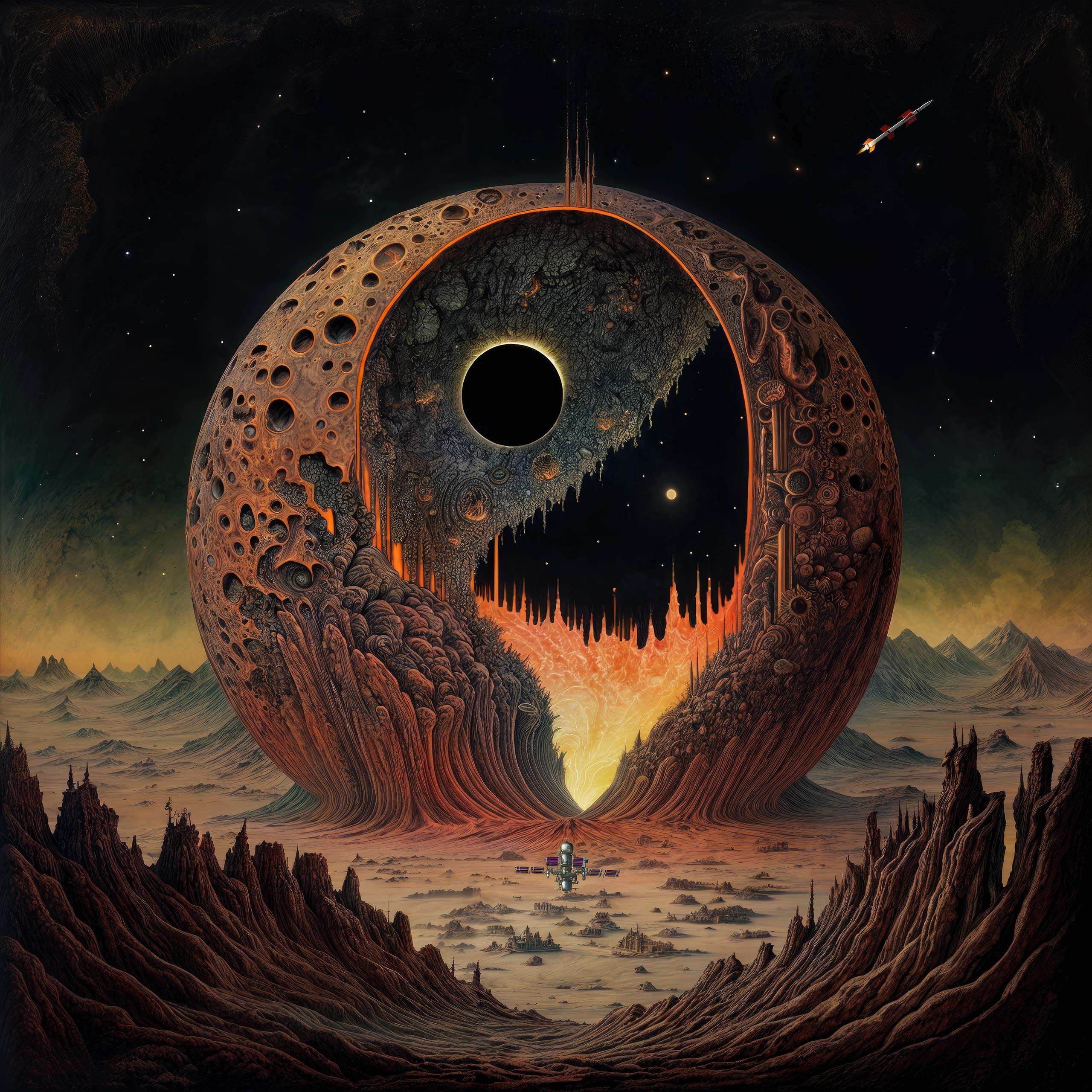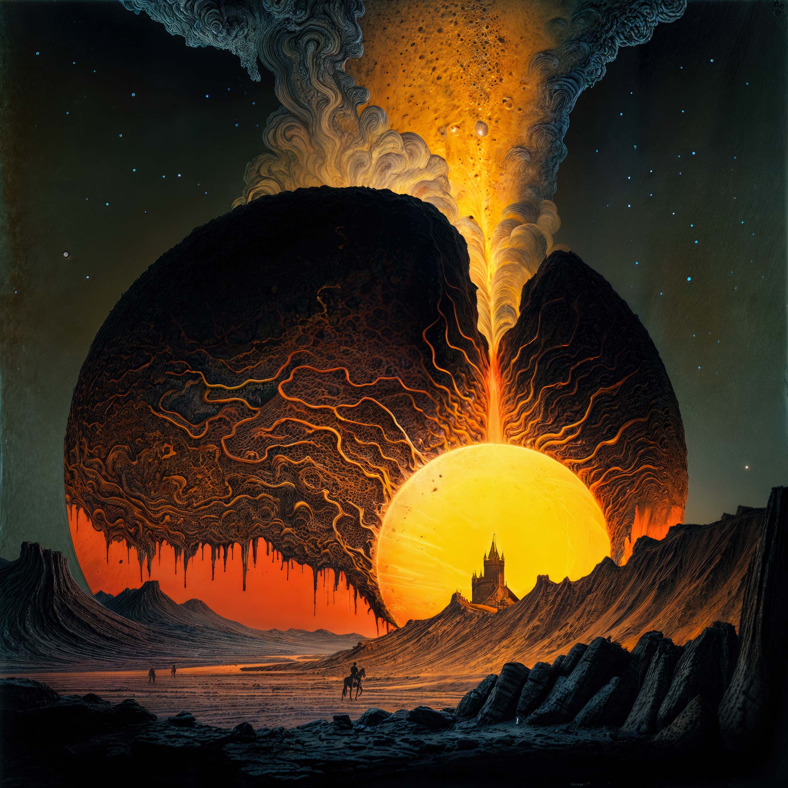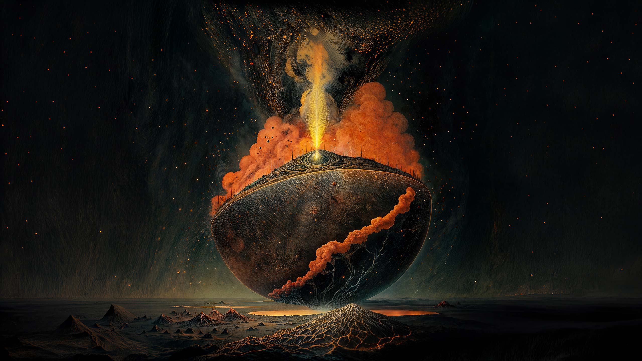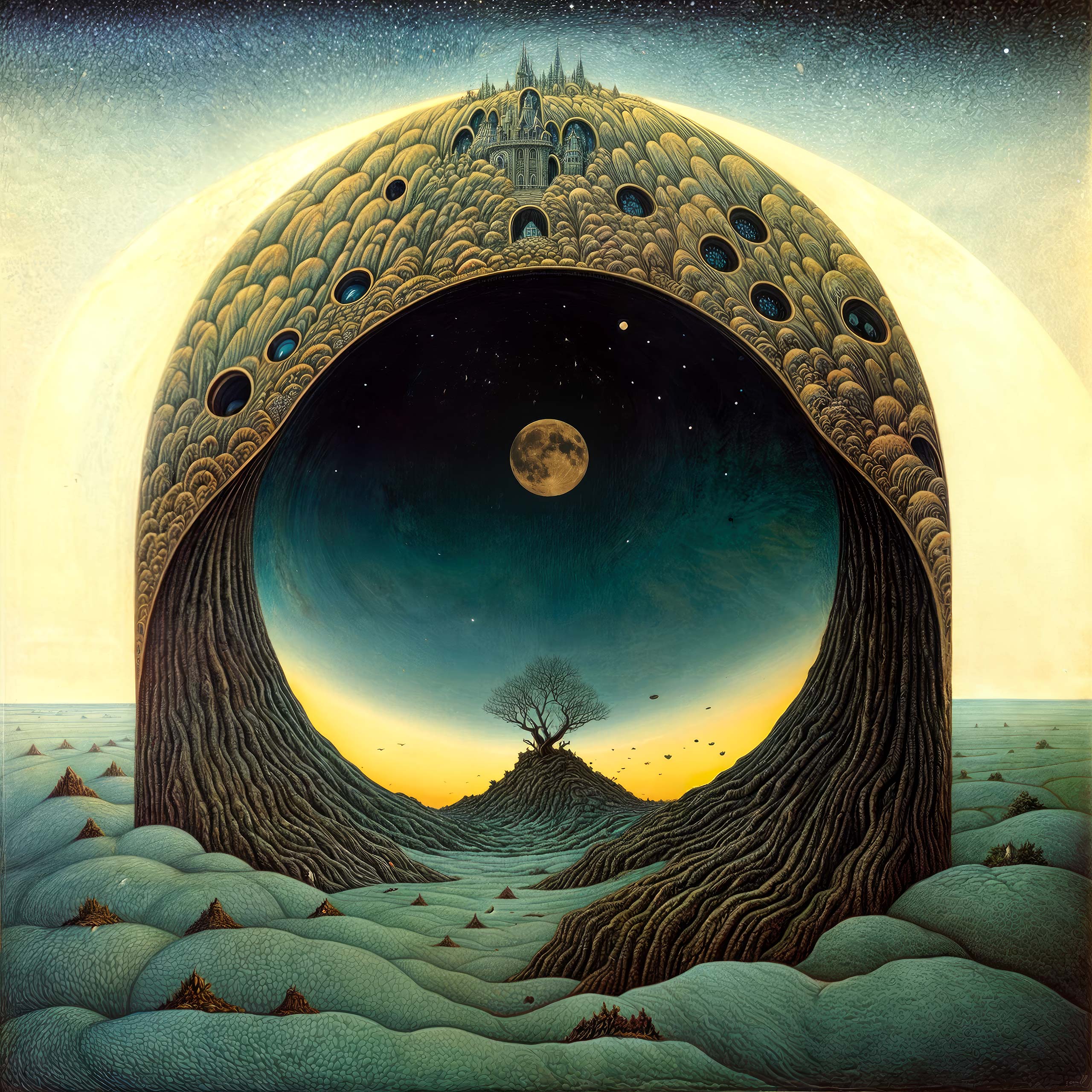 Welcome to “Petite Planets”, a collection of tiny universes encapsulated within orbs, presented in surreal, twisted cutaway views, meticulously sliced for your viewing pleasure. Immerse yourself in a spectrum of ecosystems and geographies, journeying through worlds sculpted by sand, forged in fire, frozen in ice, and flourishing with life. The artwork is part of Surreal 100 -series, celebrating 100 years of surrealism.