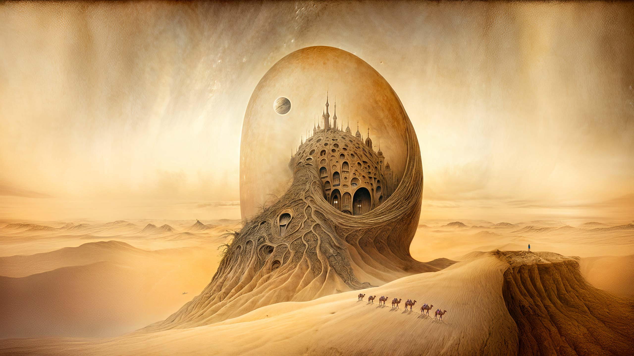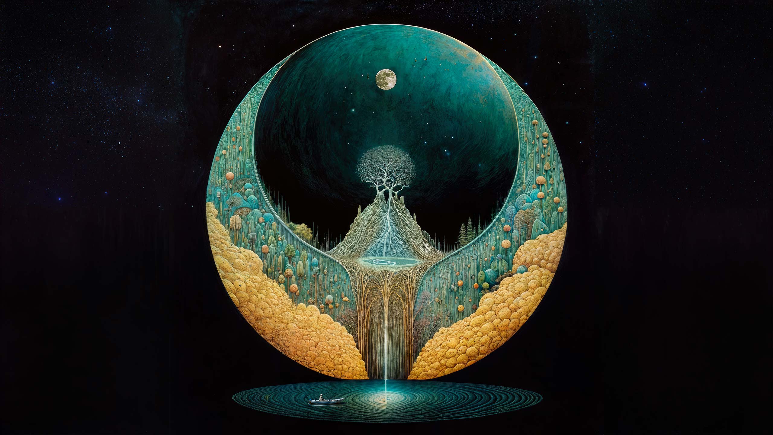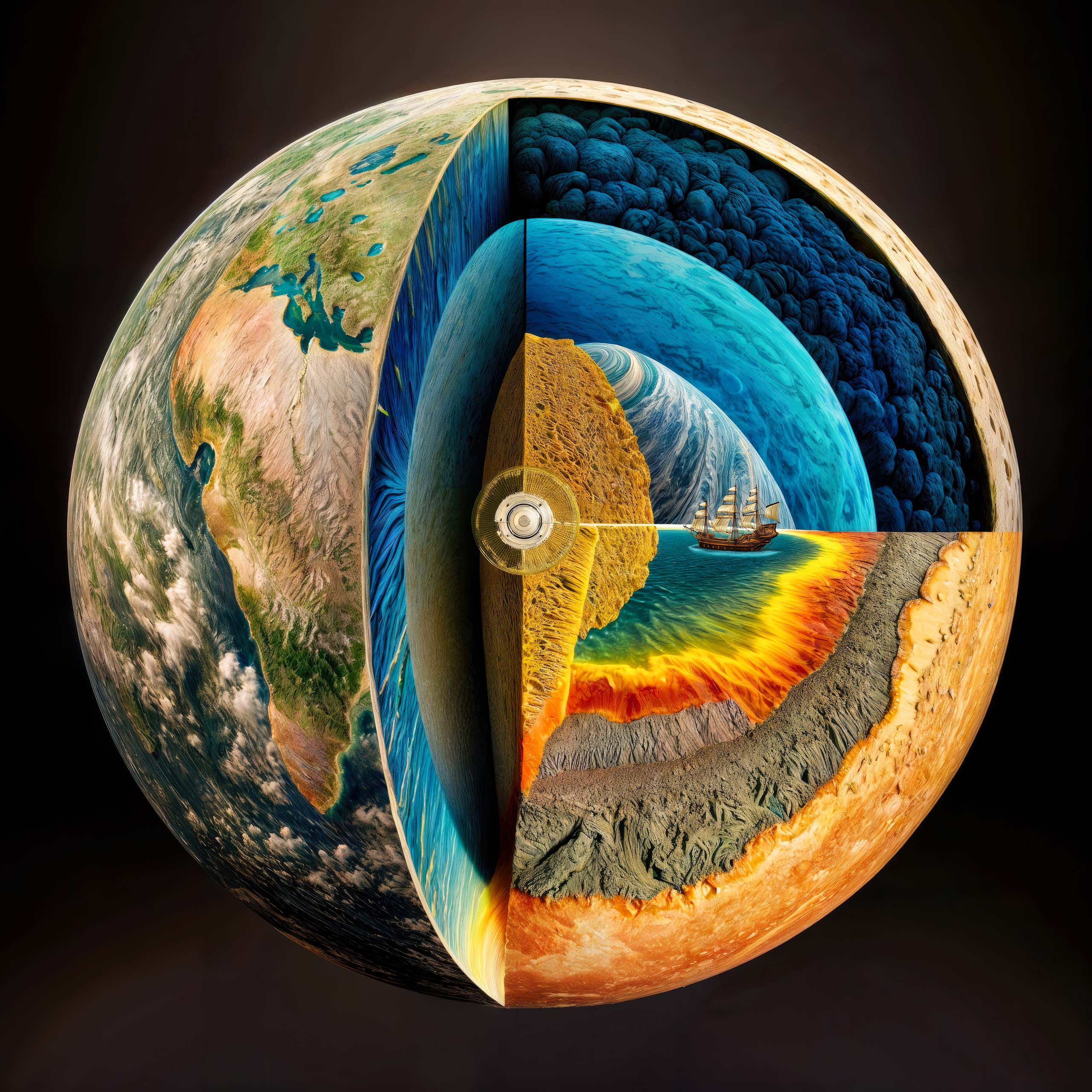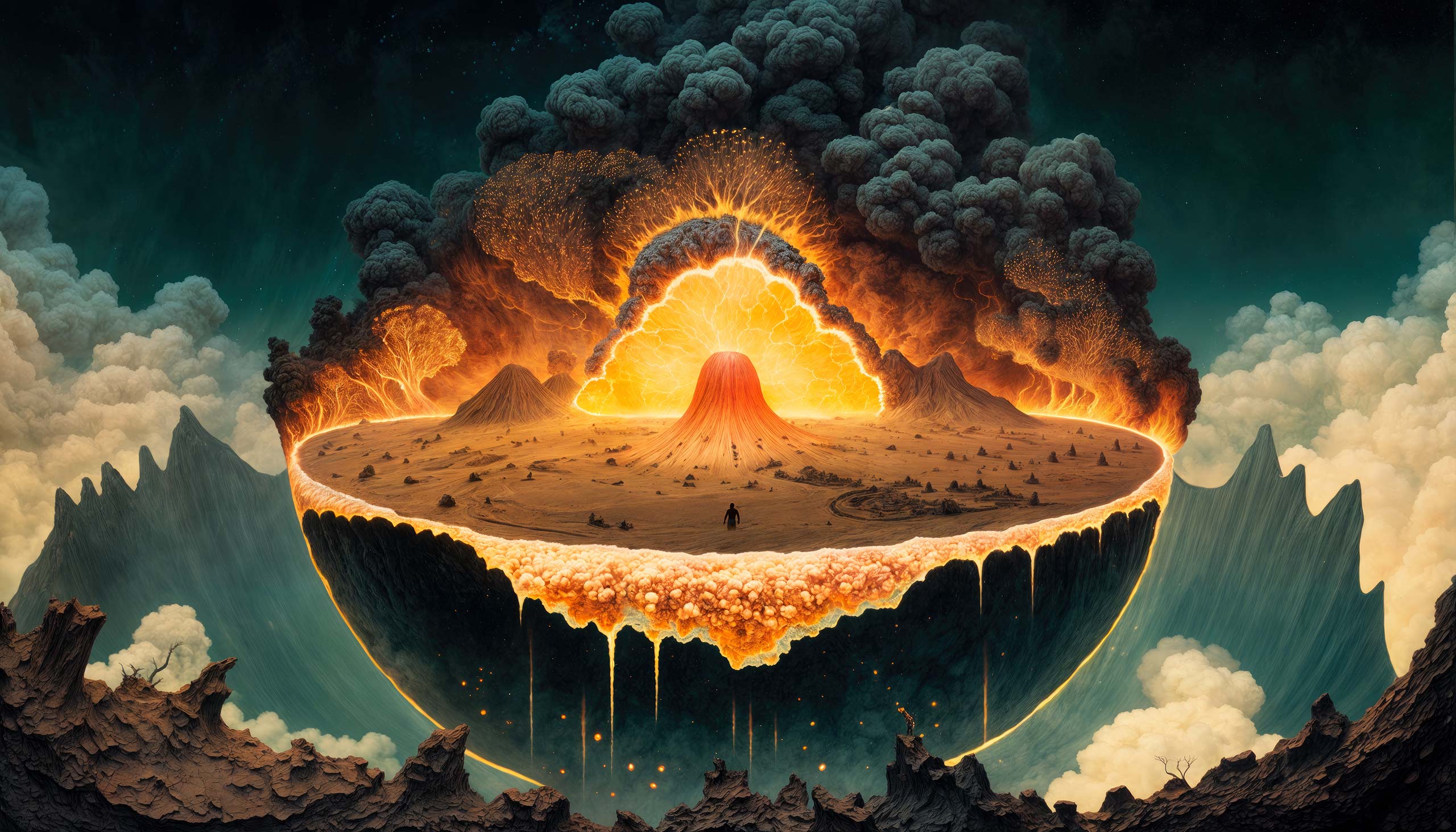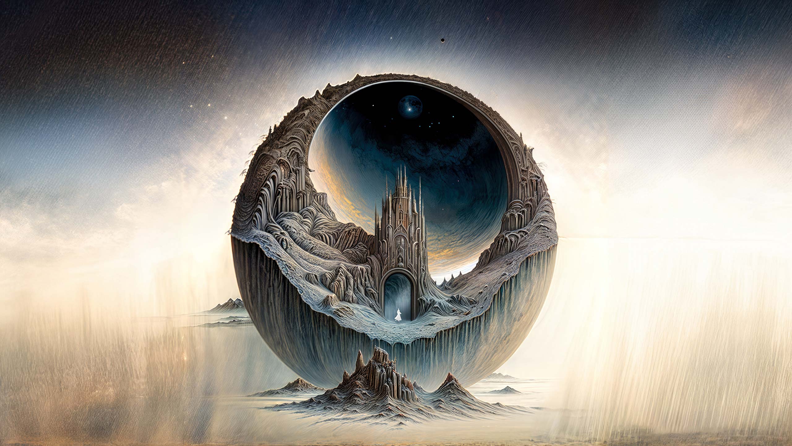 Welcome to “Petite Planets”, a collection of tiny universes encapsulated within orbs, presented in surreal, twisted cutaway views, meticulously sliced for your viewing pleasure. Immerse yourself in a spectrum of ecosystems and geographies, journeying through worlds sculpted by sand, forged in fire, frozen in ice, and flourishing with life. The artwork is part of Surreal 100 -series, celebrating 100 years of surrealism.