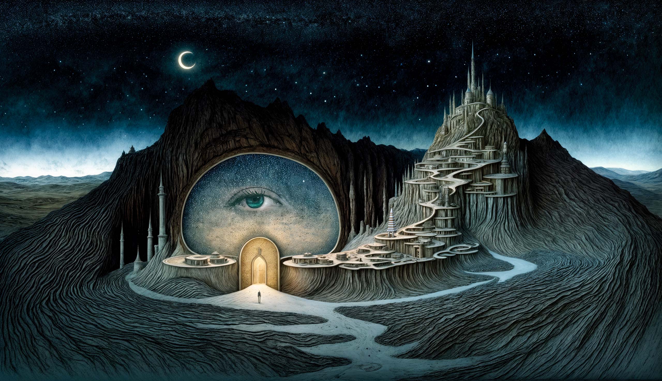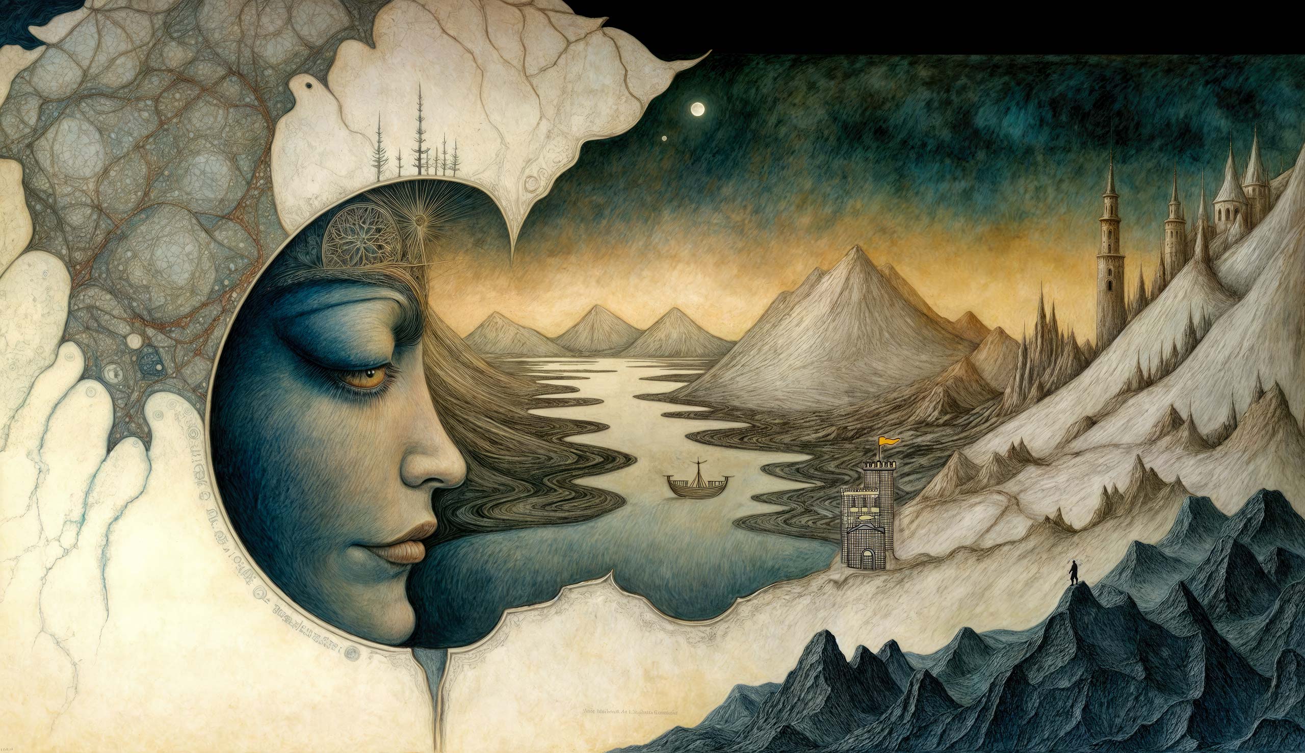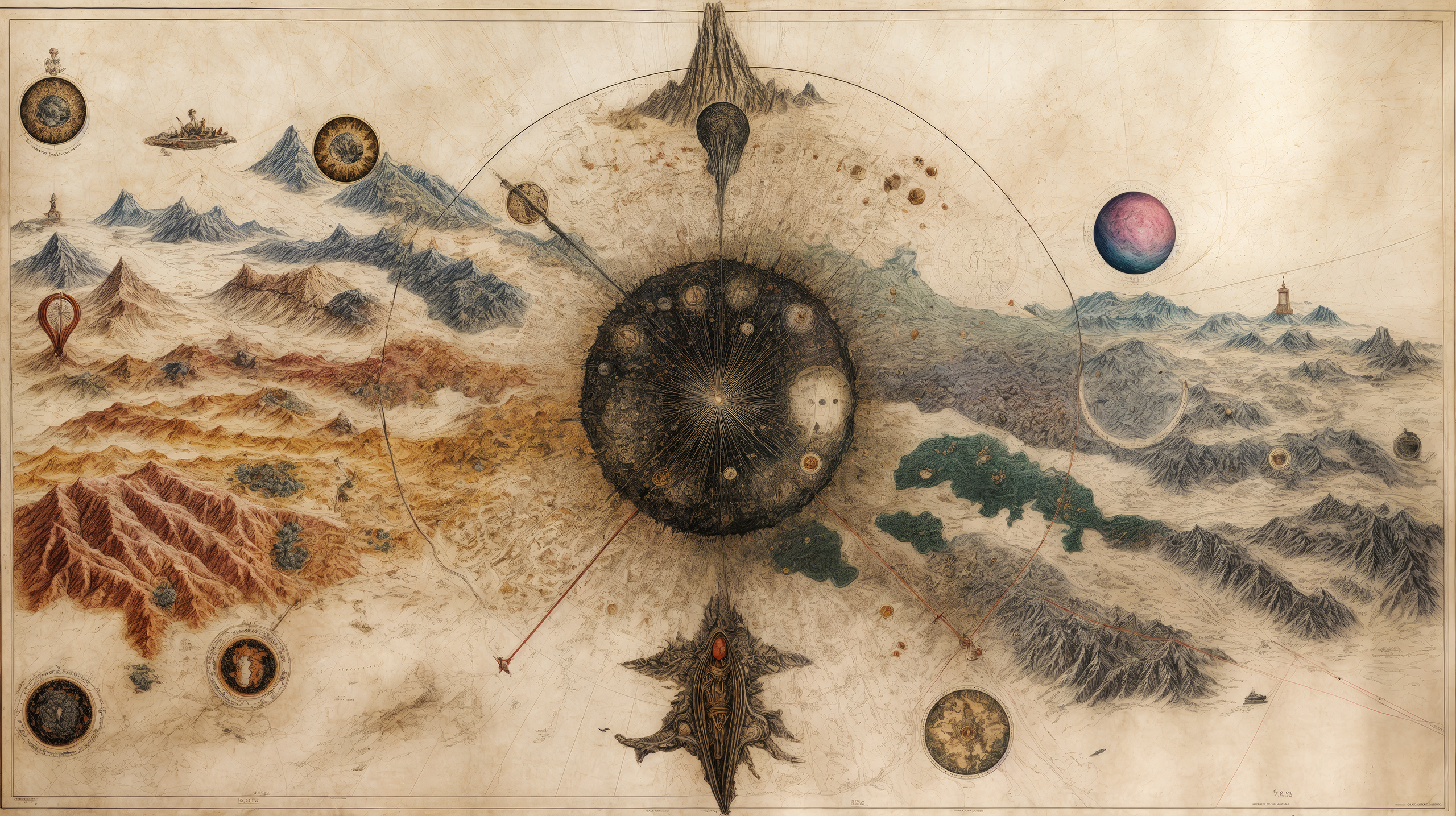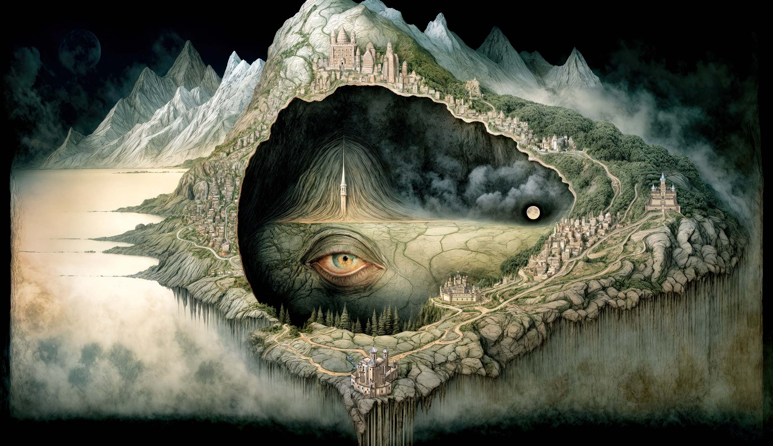 “Terra Incognita” maps out the great unknown, piece by piece, bringing to life the tales and myths of far-off places, capturing the archaic imagination of our ancestors. This series of highly detailed maps and cartographics is inspired by the legends of the Vikings, Celts, Ancient American civilizations, and beyond. Furthermore, the piece delves into the aesthetics of mapmaking, transitioning between 2D sketches, immersive 3D worlds, and venturing into impossibly twisted topographies. Many of these maps blend the art of landscape painting with the craft of cartography, incorporating symbolic markings and elements of navigation, exaggerating key features and sometimes reaching into the surreal.