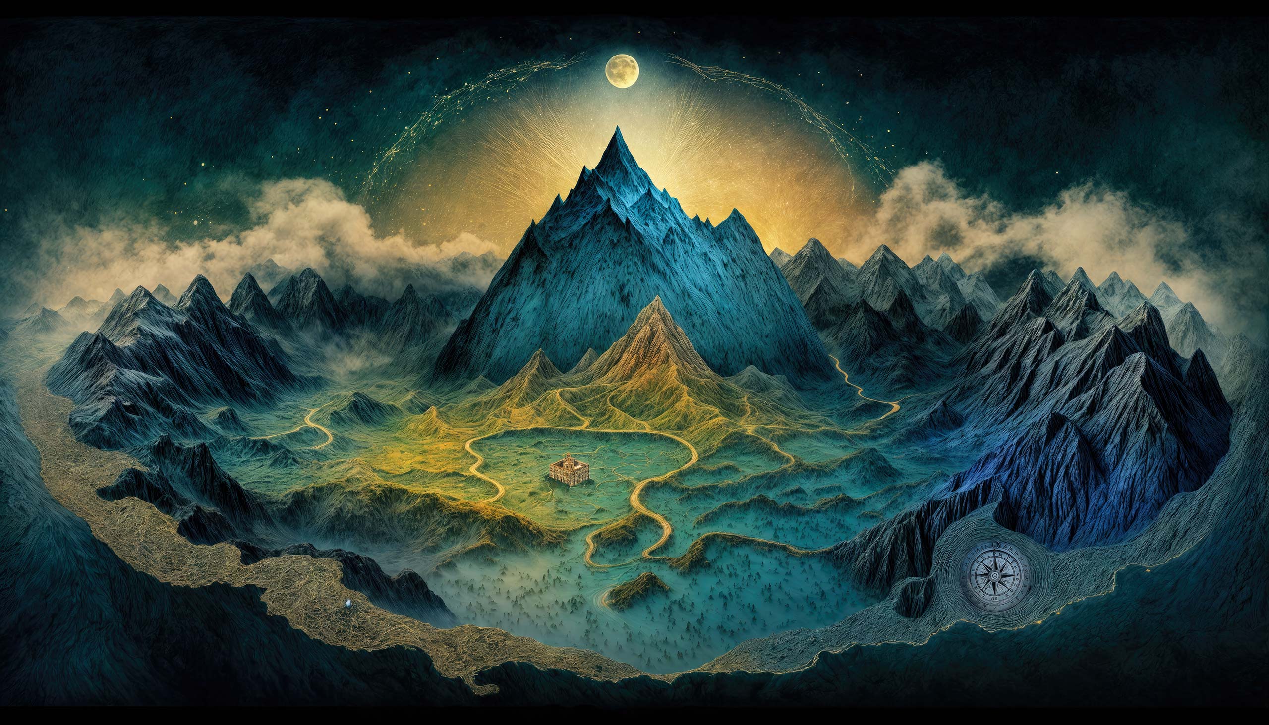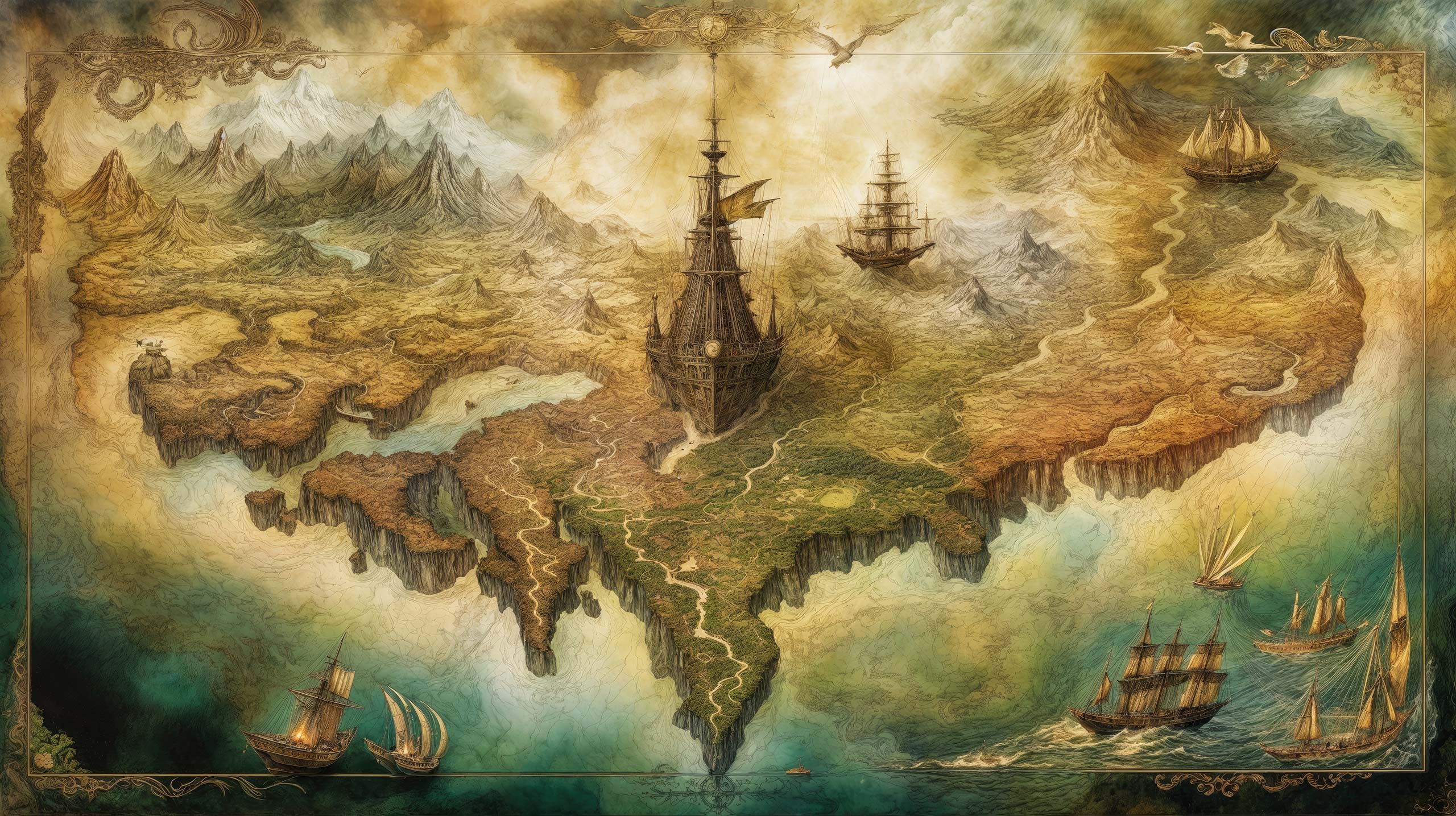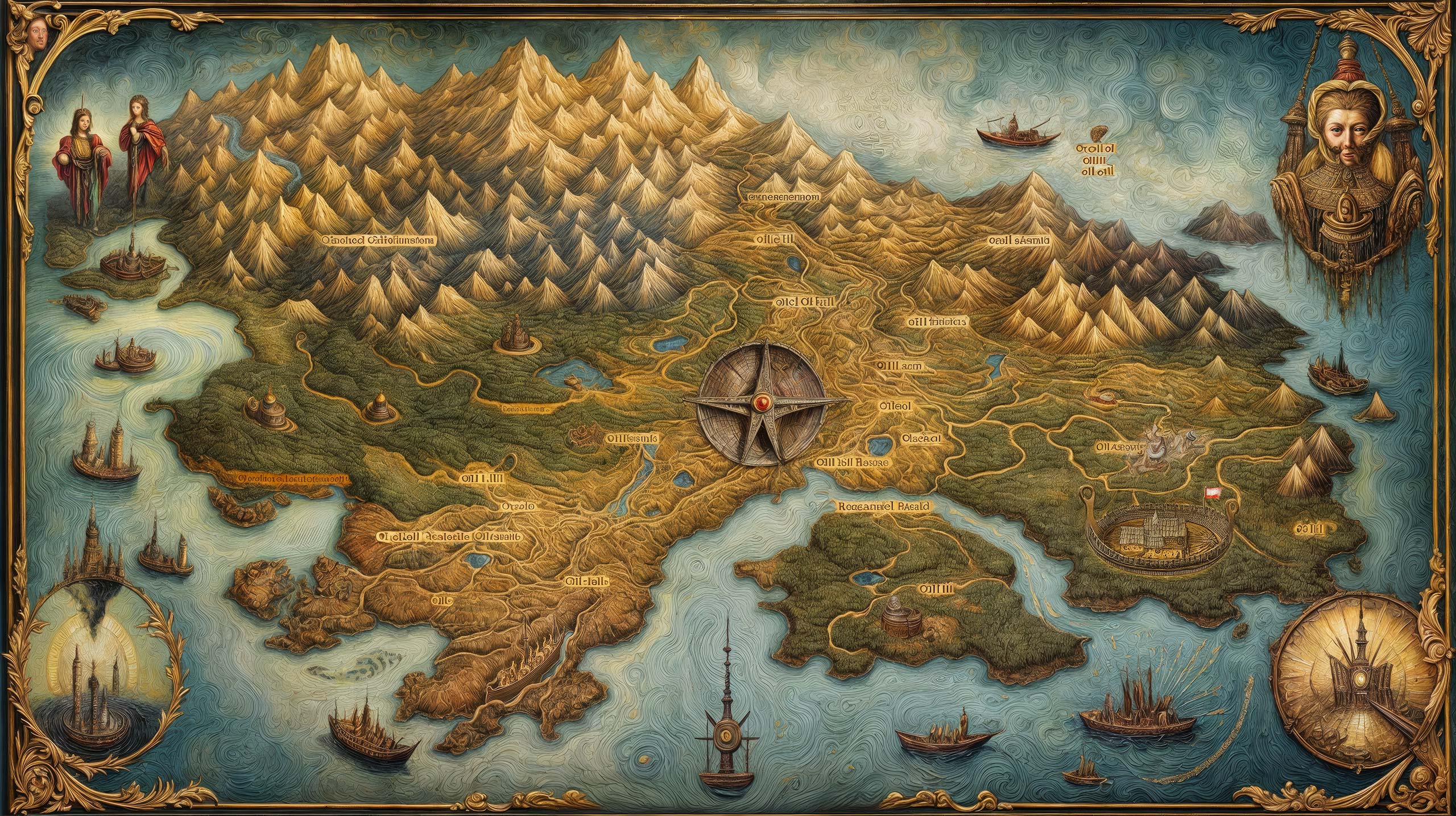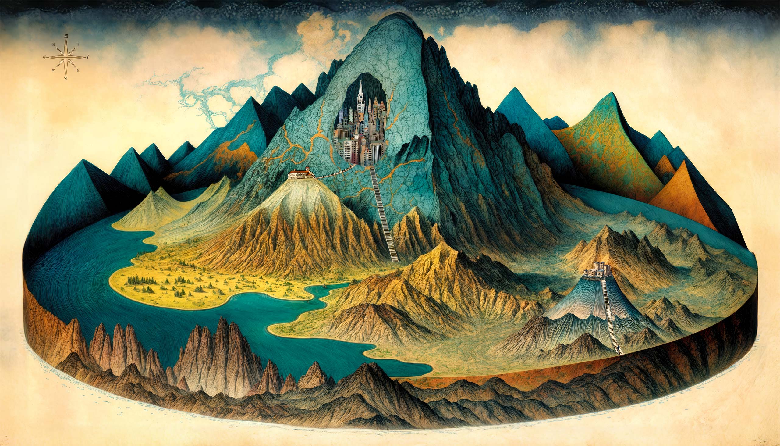 “Terra Incognita” embraces this sense of mystery, revealing unexplored lands brimming with imagination, rooted in ancient myths and folklore. These maps depict unknown territories beyond the seas, pieced together from fragmented memories, legendary tales, and the accounts of a few daring explorers. Each map, both ancient and symbolic, is a canvas of cryptic riddles yearning to be solved. Hidden pathways and intricate mazes lie in wait, promising untold treasures to those who dare to explore.