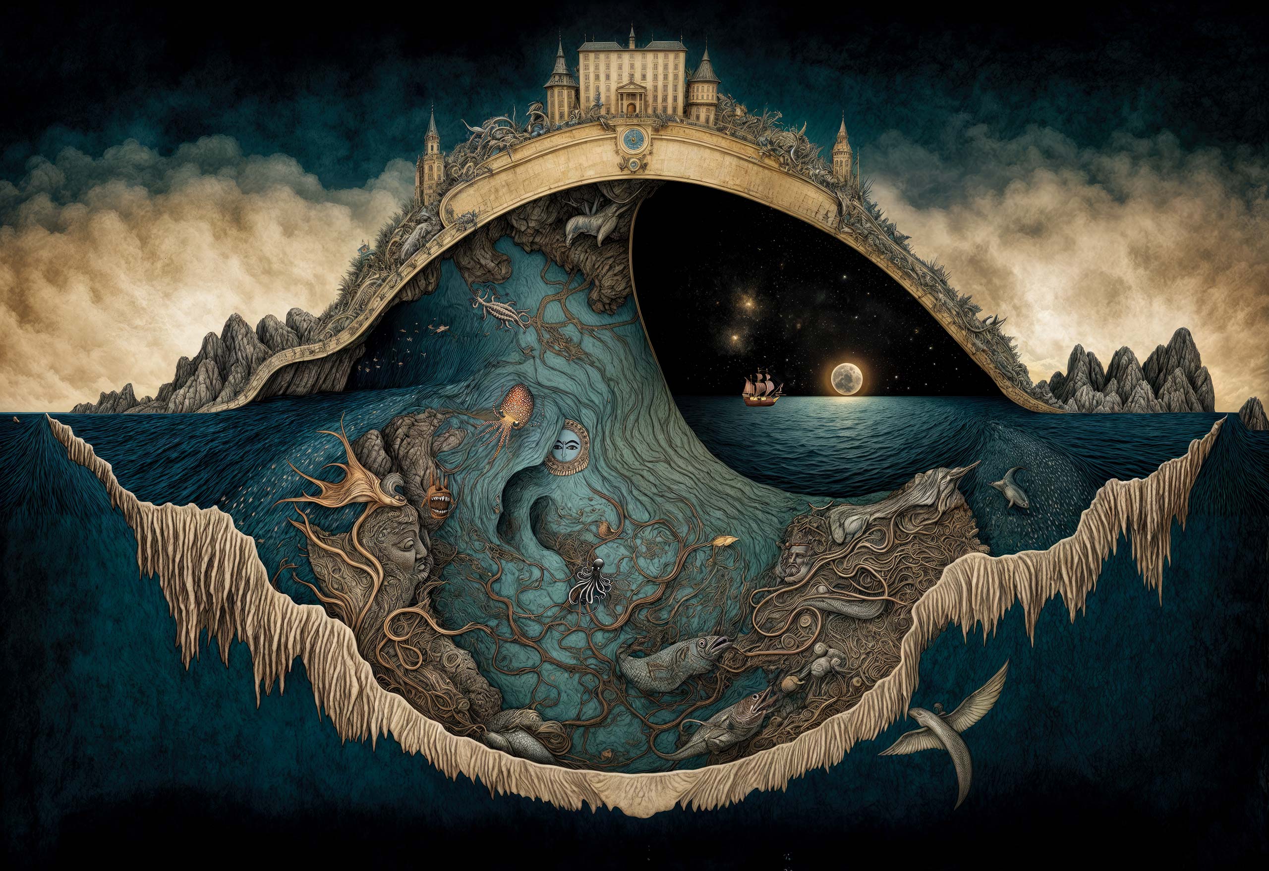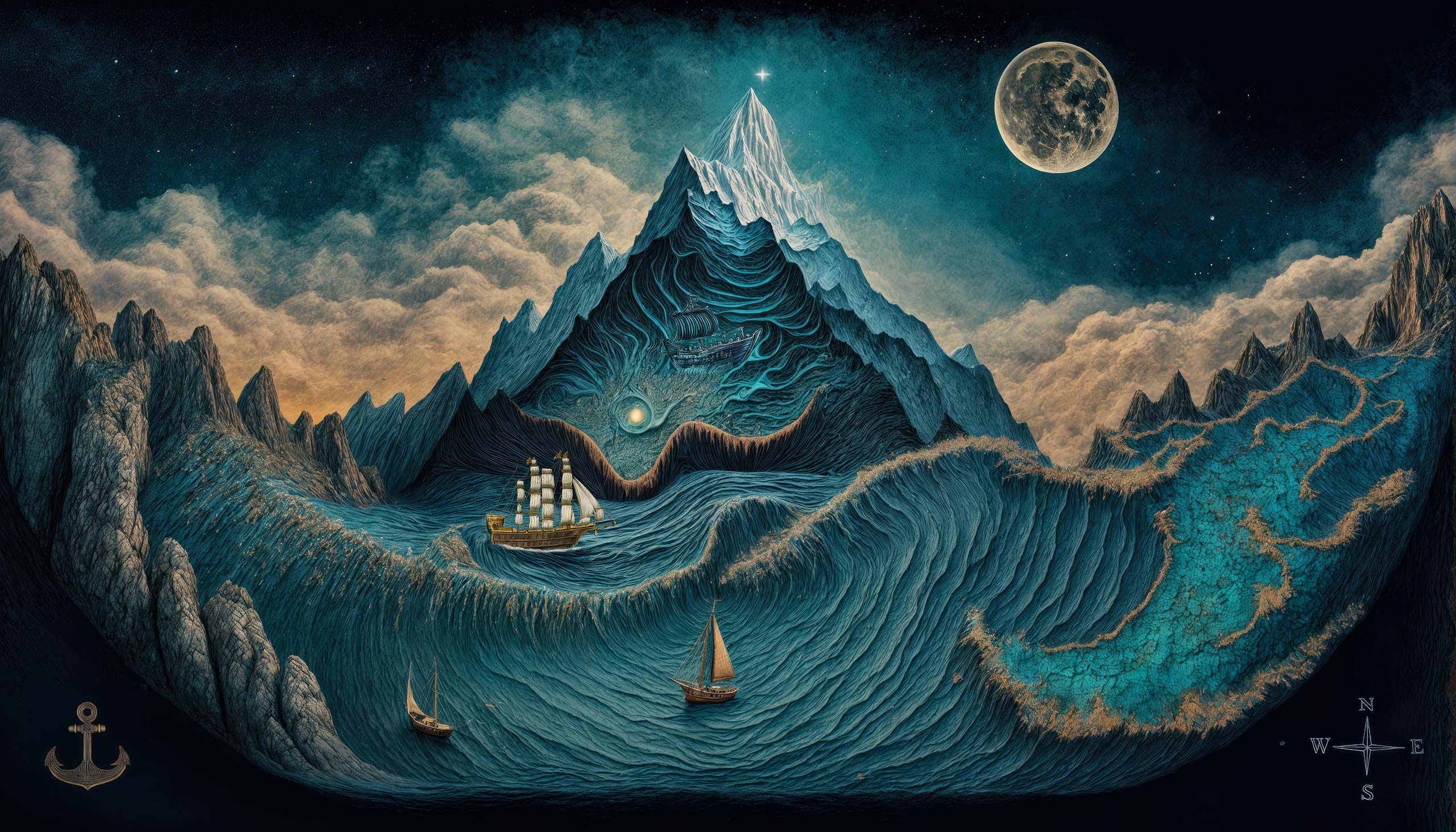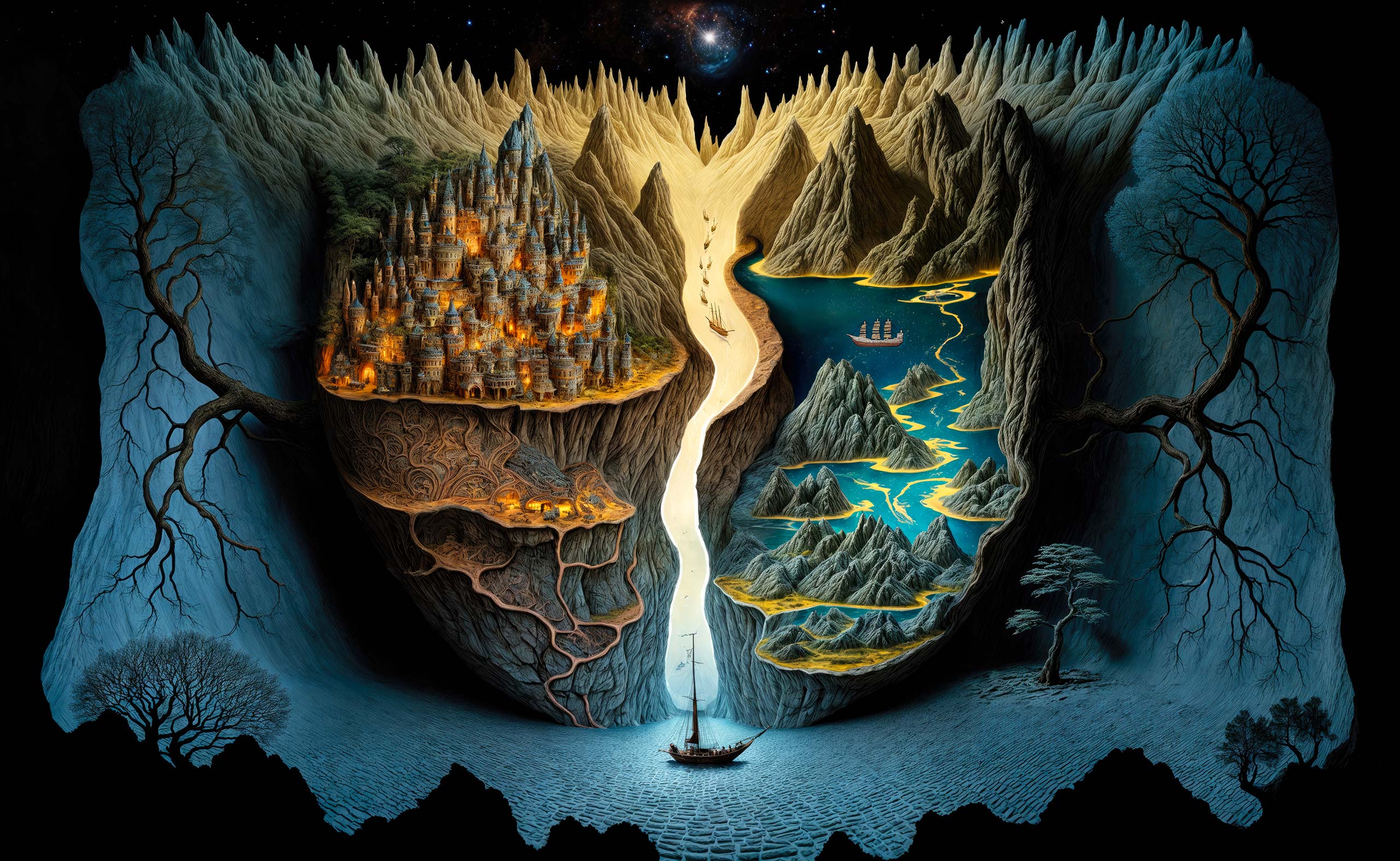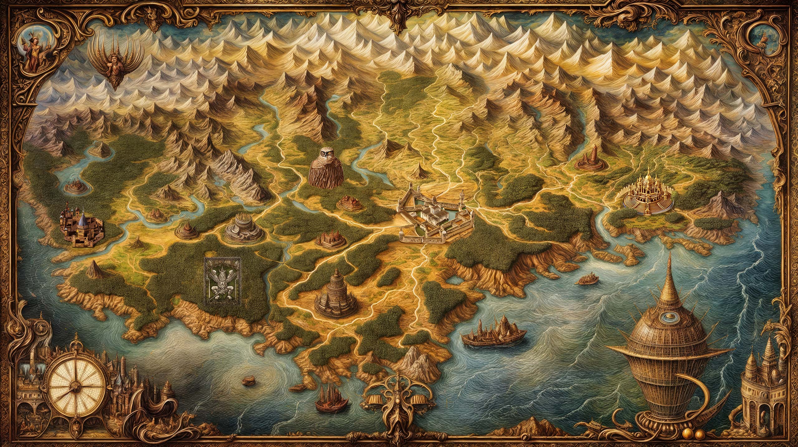 “Terra Incognita” embraces this sense of mystery, revealing unexplored lands brimming with imagination, rooted in ancient myths and folklore. These maps depict unknown territories beyond the seas, pieced together from fragmented memories, legendary tales, and the accounts of a few daring explorers. Each map, both ancient and symbolic, is a canvas of cryptic riddles yearning to be solved. Hidden pathways and intricate mazes lie in wait, promising untold treasures to those who dare to explore.