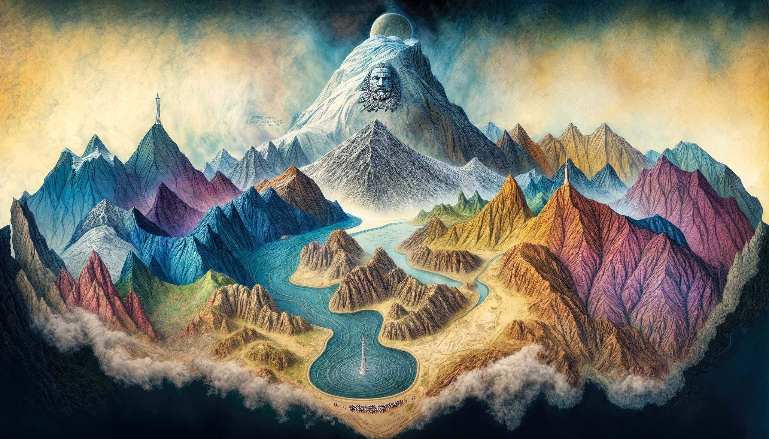 The art of mapmaking—capturing and observing the environment from a high vantage point—enables us to feel in command of our surroundings. Our drive to seek out high places for panoramic views or to construct sacred structures on elevated ground reflects the human desire to attain a god-like perspective, seeing the world in its entirety. This bird’s-eye view can be seen as a metaphor for transcendence. Building on this idea, “Terra Incognita” explores the sacred lands, revealing the vast landscapes where the divine and the real intertwine.