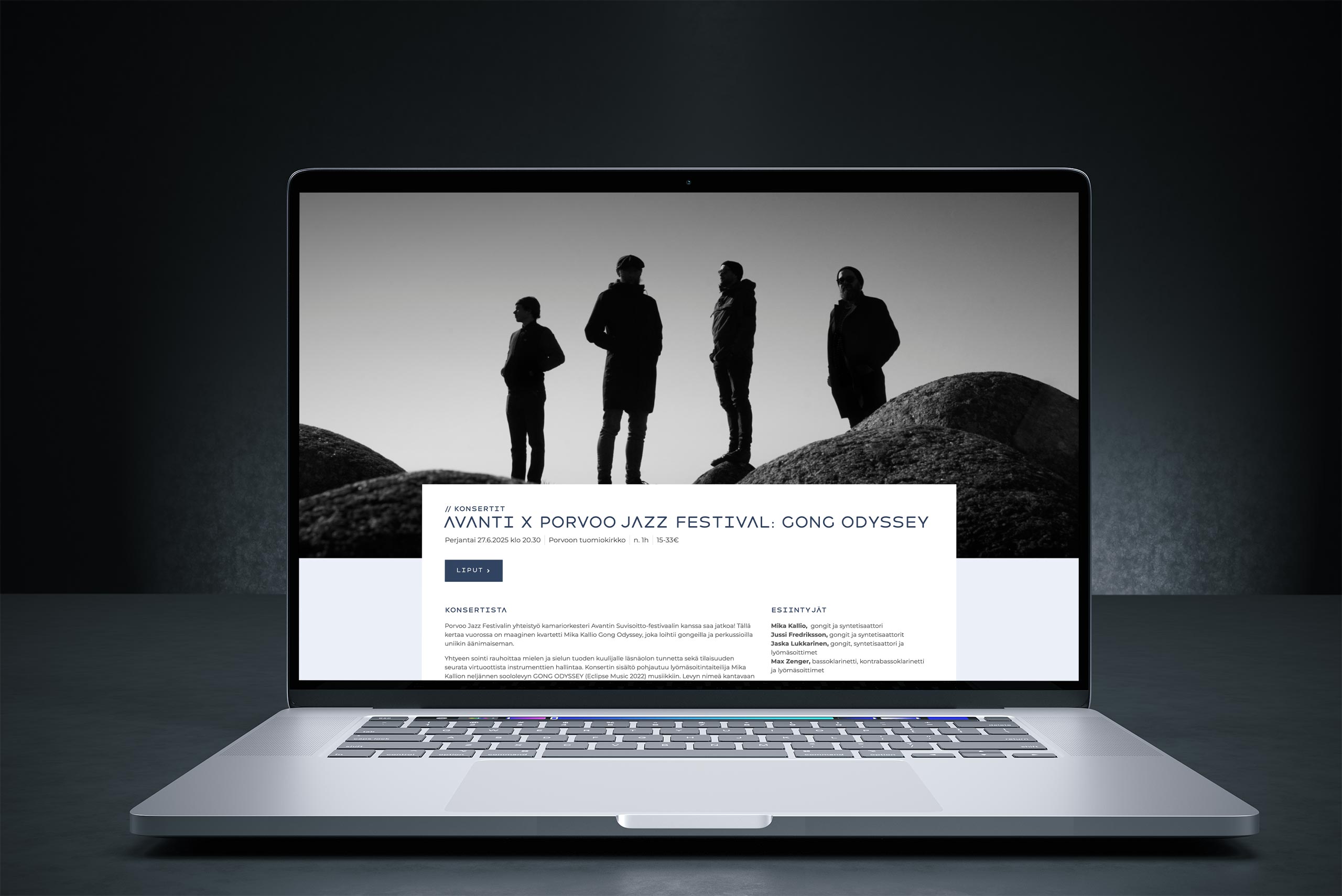 Projekti alkoi verkkosivujen päivitystarpeesta, mutta laajeni käsittämään myös visuaalisen ilmeen uudistuksen, kun asiakas piti Sometekin tarjoamista luovista ratkaisuista. Tummanpuhuva värimaailma sai innoituksensa tummista, arvokkaista lavavalaistuksista ja sovitettiin Avantin brändikuvamaailmaan. Typografia ja taittoelementit uudistettiin virtaviivaisemmiksi ja tukemaan mielikuvaa ennakkoluulottomasta orkesterista. Suvisoitolle luotiin oma visuaalinen ilme – sellainen, joka istuu luontevasti osaksi verkkosivustoa mutta tarjoaa samalla tilaa festivaalin vuosittaiselle uudistumiselle.